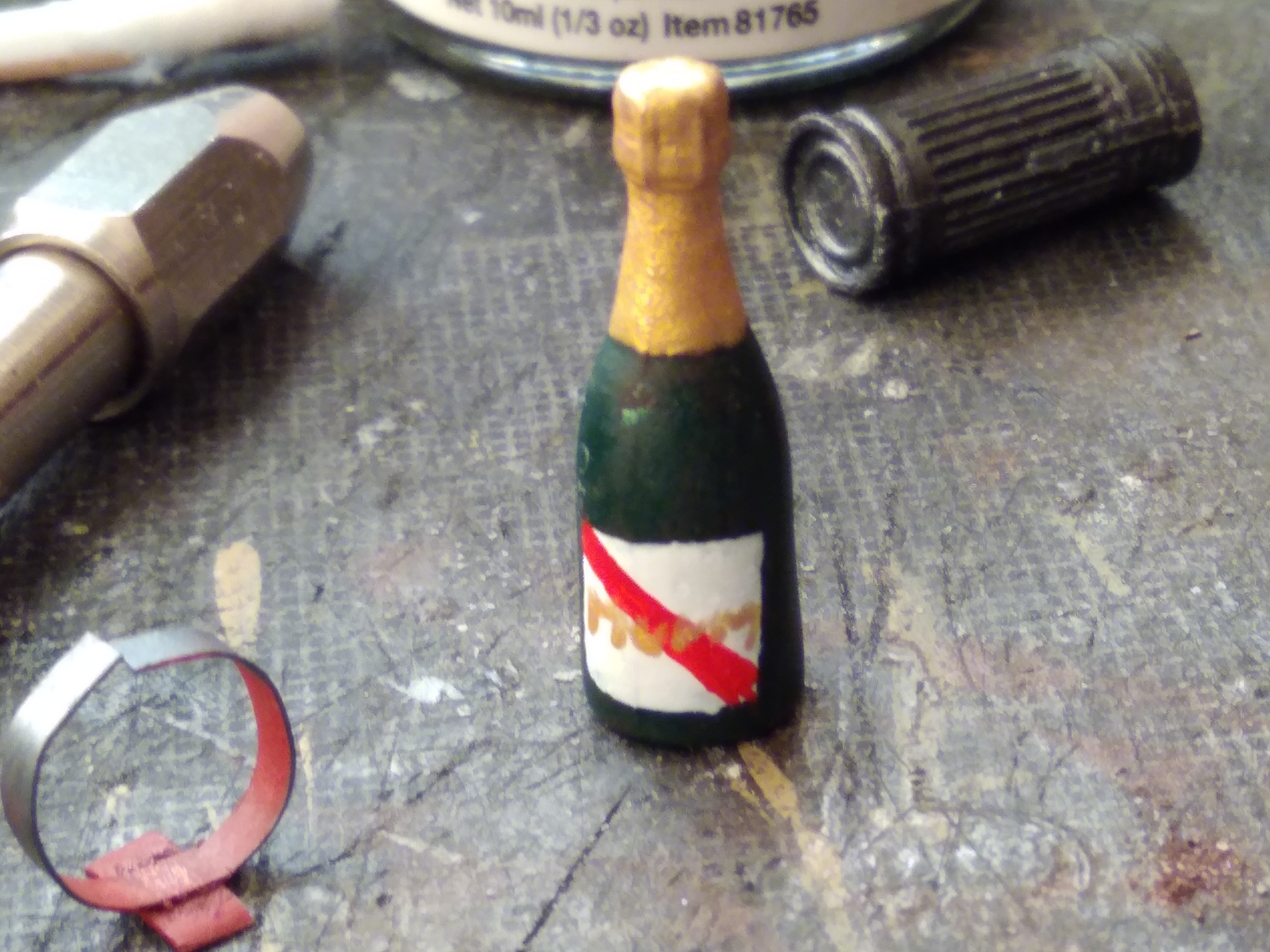 - Paint stripped off of the bottle neck to show the 'foil'. Ribbon and label cut from thin rubber and glued into place. Crowned with a 'gold' button on the ribbon..JPG (86.64 KiB) Viewed 3065 times