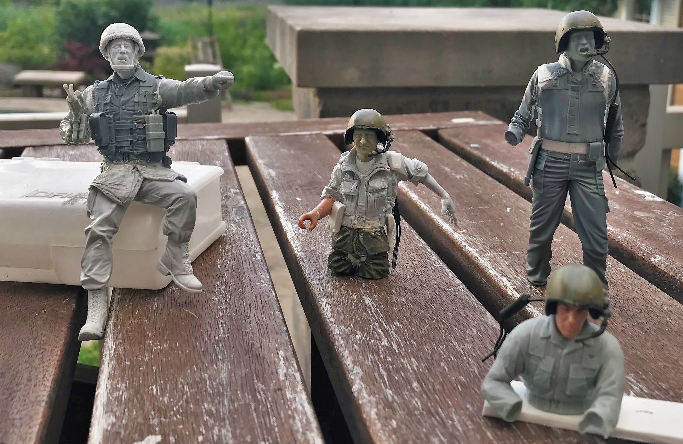 Here is the finalized crew, minus a couple of hands, sunglasses and fine details that will be added after painting.