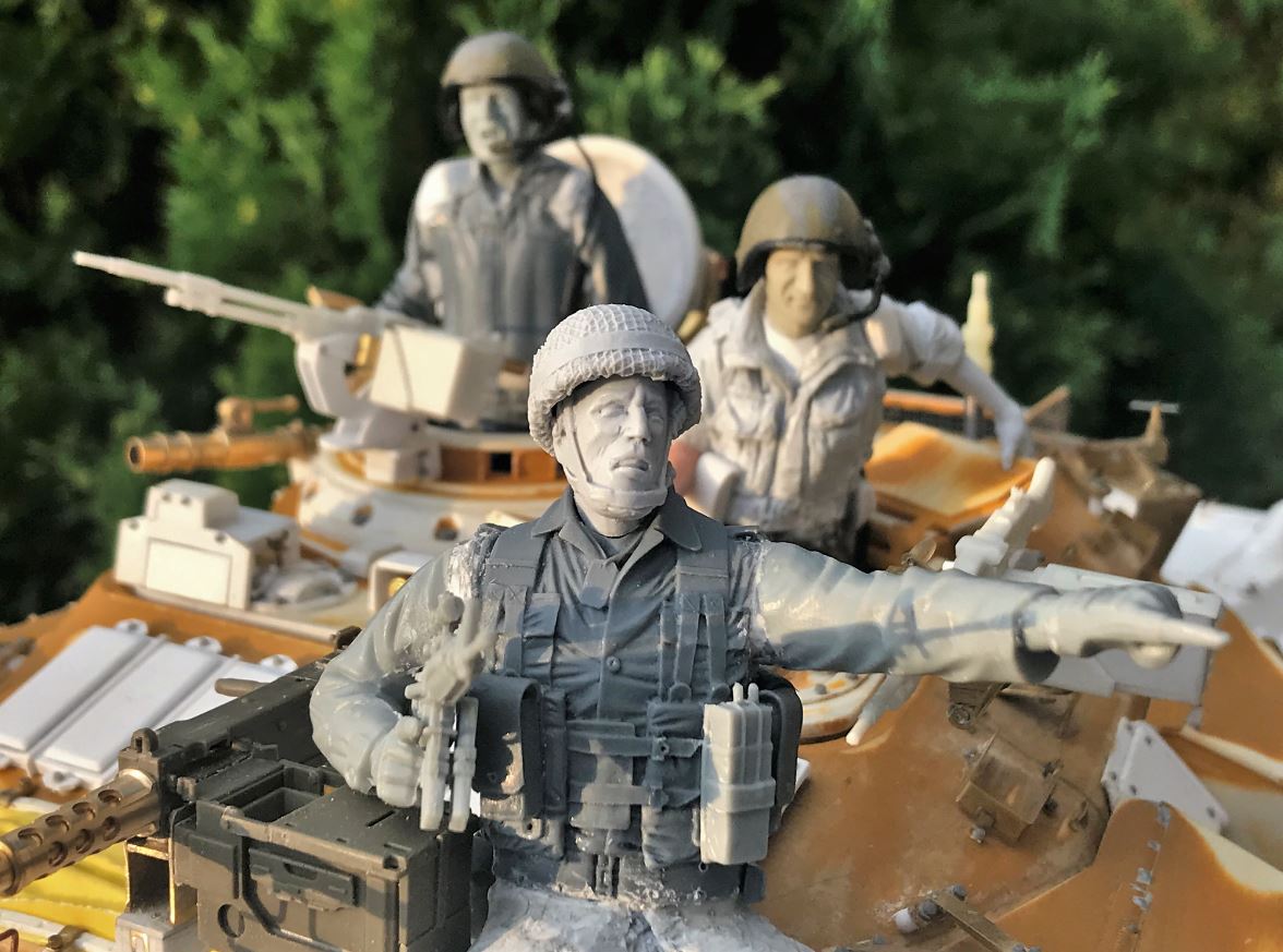 Three Israeli tank crews and one infantry Captain were created with a mixture of parts seen on the past posts. Although they are in need of a good wash after all the putty, sanding and polishing, the build pictures show how the construction was performed. They will of course look much better once cleaned and painted.