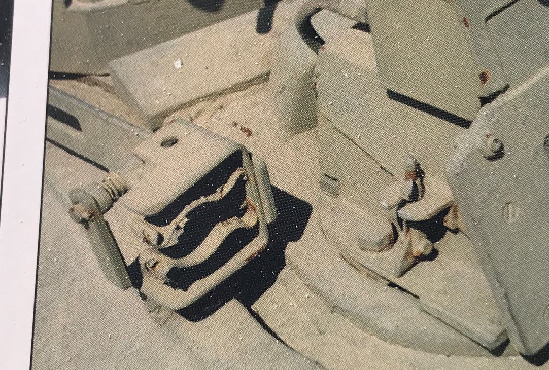 The Shot Kal has its travel lock installed on the rear right side of the tank. Likely due to the higher engine deck of the Continental engine compared to the Meteor engine of the Mark 3, the gun lock has been raised. It seems obvious that the standard Mark 3 gun lock was removed and then simply reattached to an extended bracket.