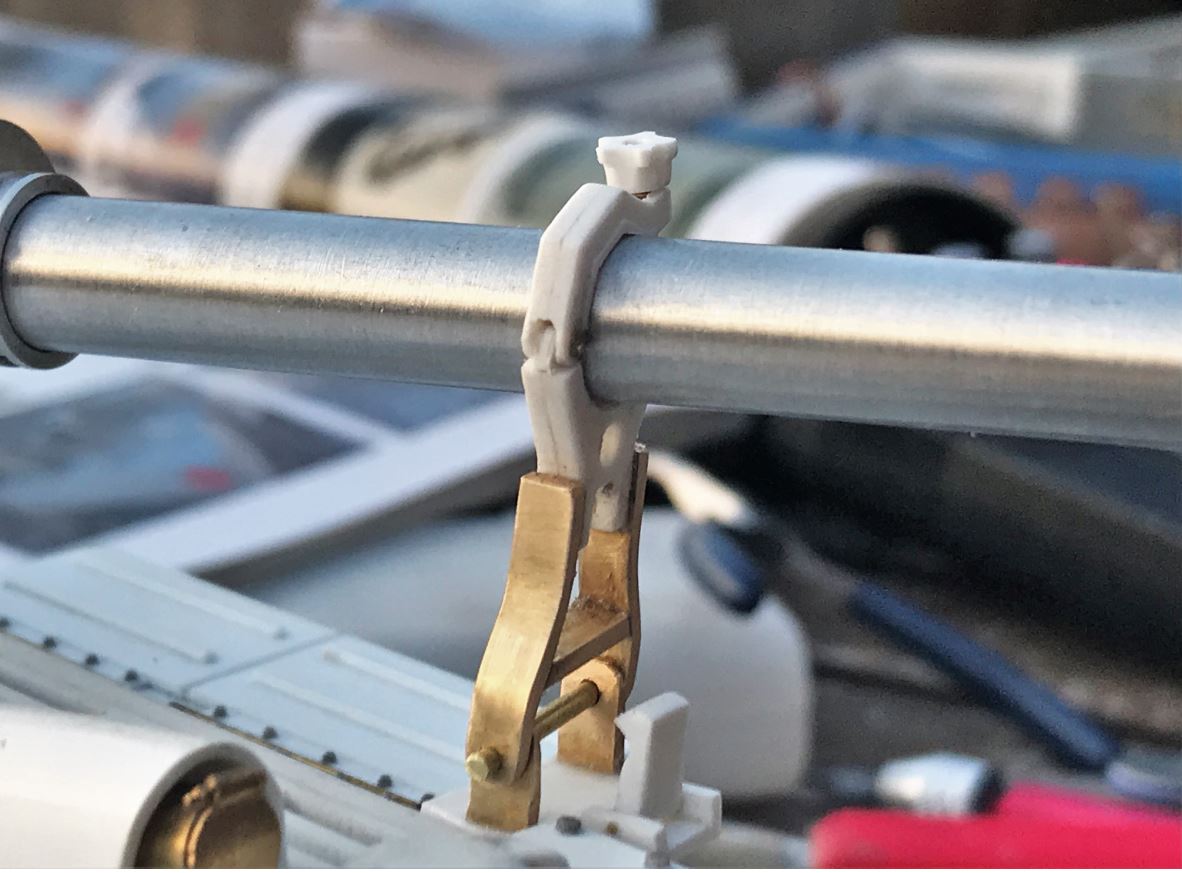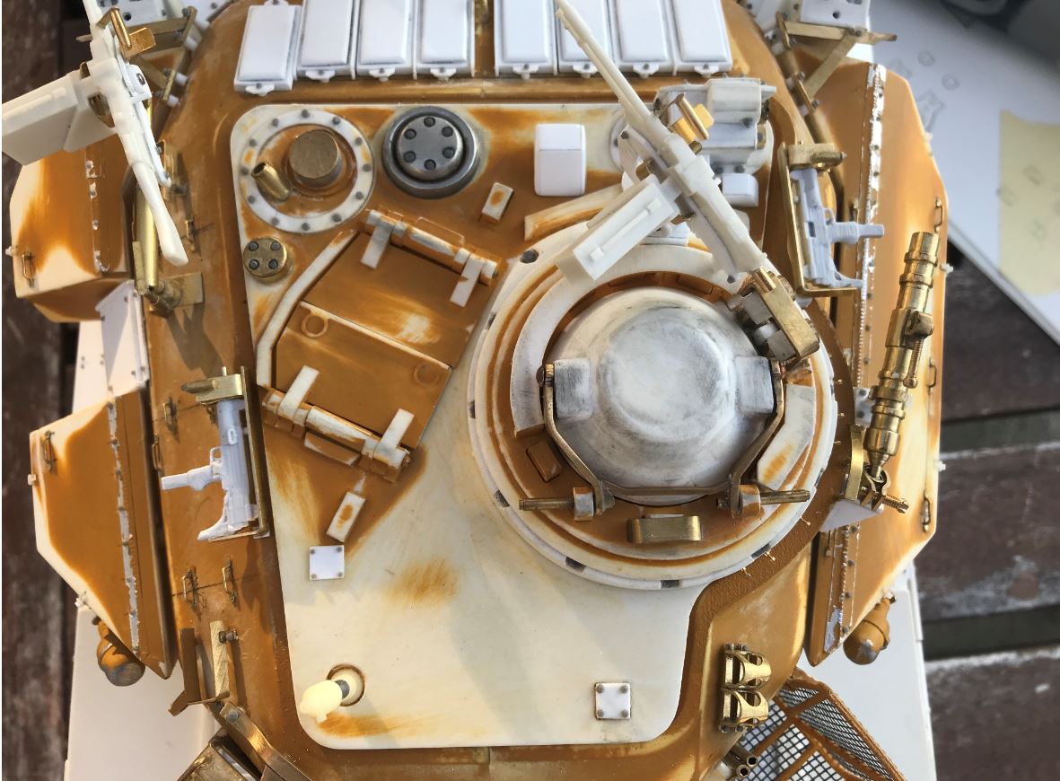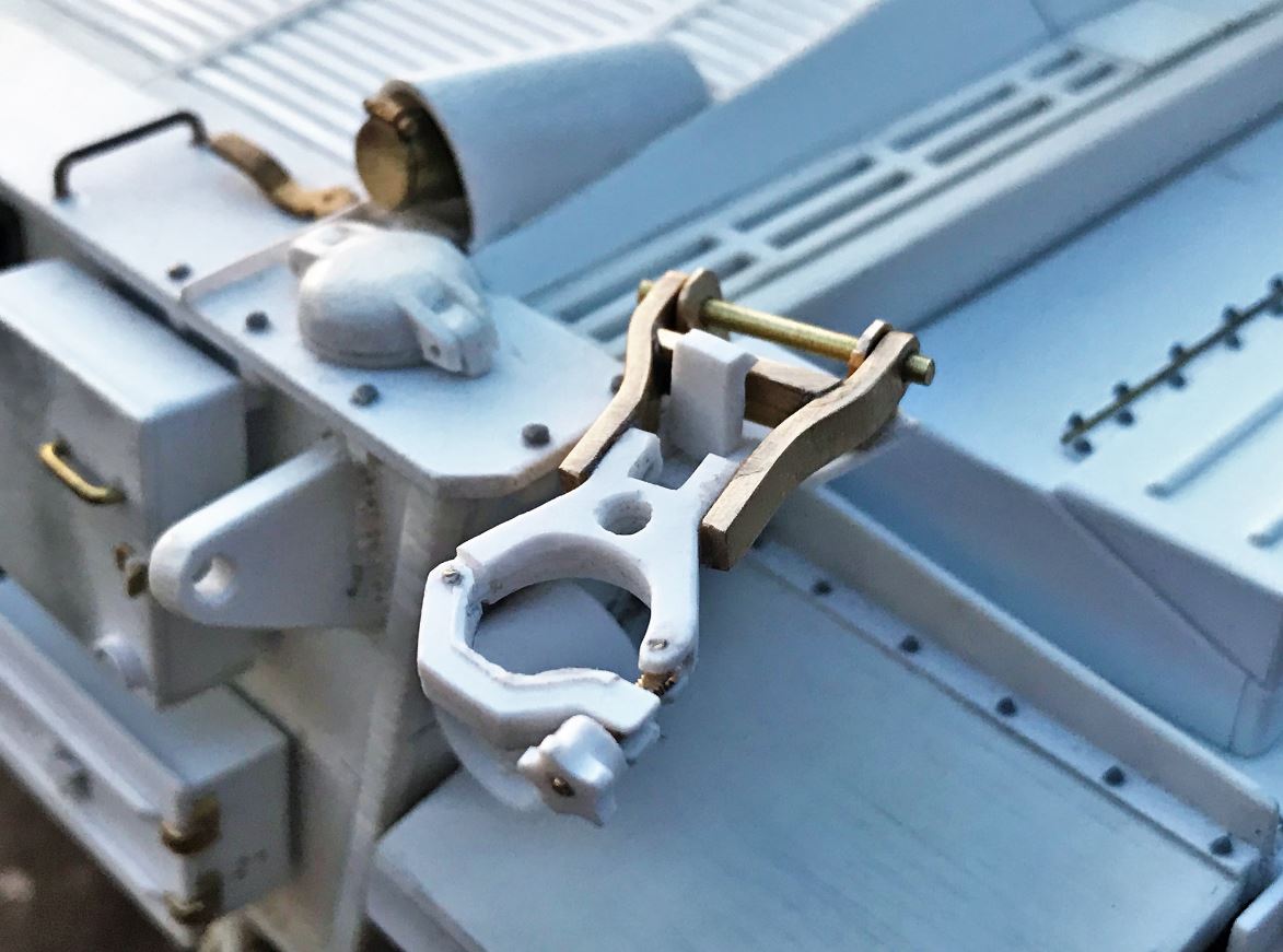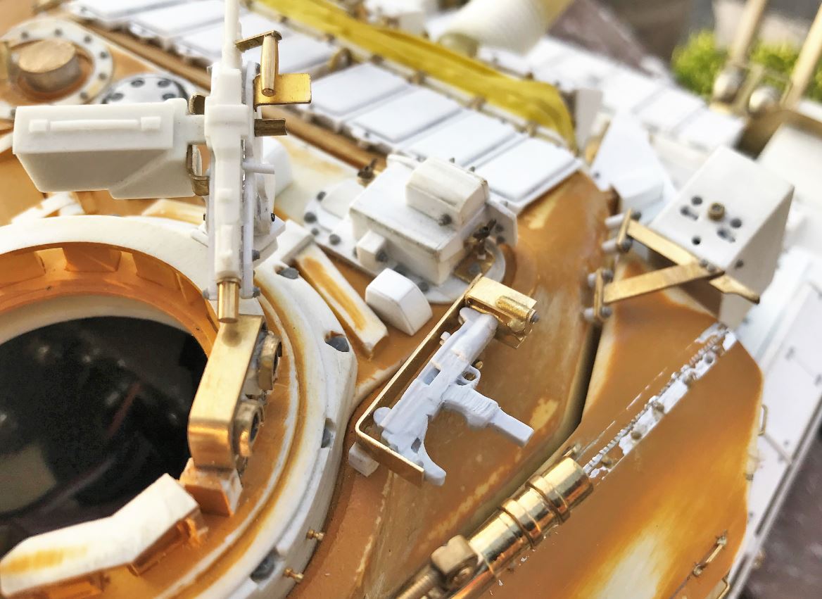 The UZI stands were created in brass. I had to compromise a little bit on the placement of the stands so that the roof of the turret remains removable.