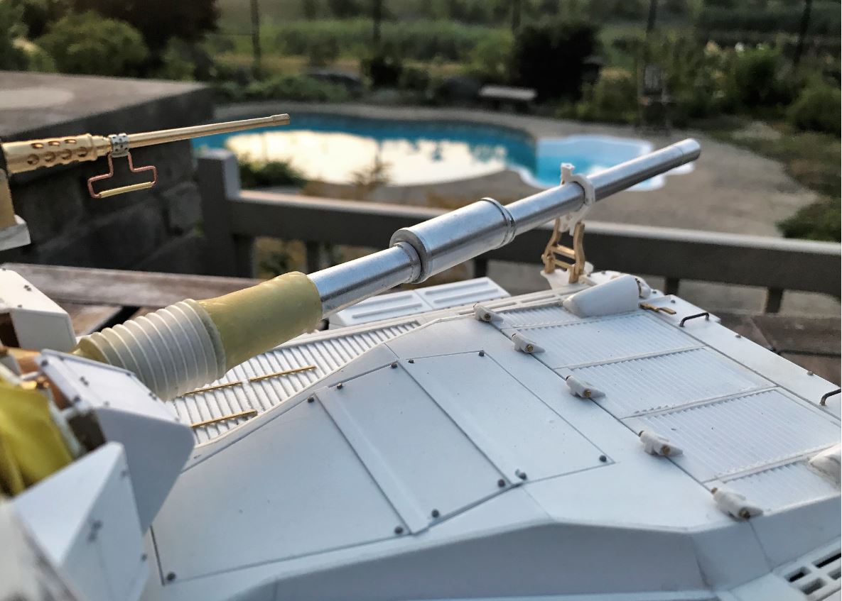 My idea of fun was to recreate the gun lock in a functional way. The 105mm L7 gun is somewhat larger than the 20pd so i had to do some adjustments on the Ludwig plastic parts. The rest is a brass job taking a couple of hours. I am happy with the results.