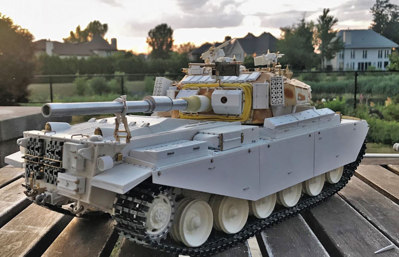 Comparing the Sho't Kal to a naked T-80 (by no means small) for an upcoming project, the pictures show the large size and height of the Centurion. I am also starting to have a weight issue, at 11 pounds fully loaded, this is the heaviest tank I have.