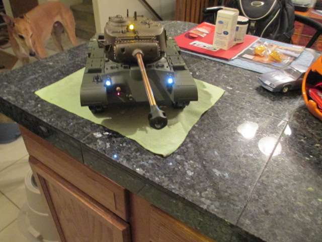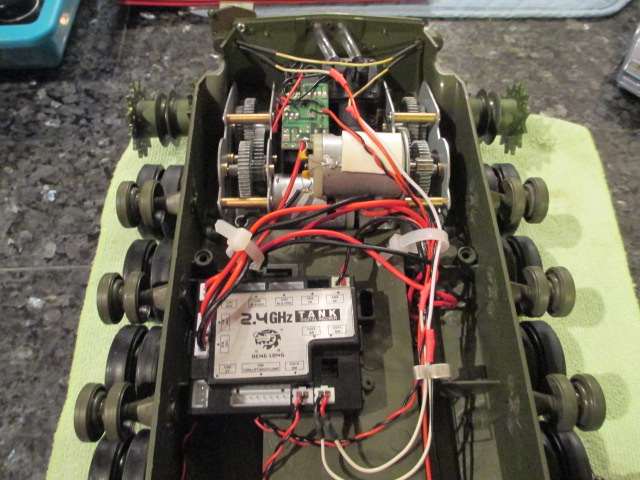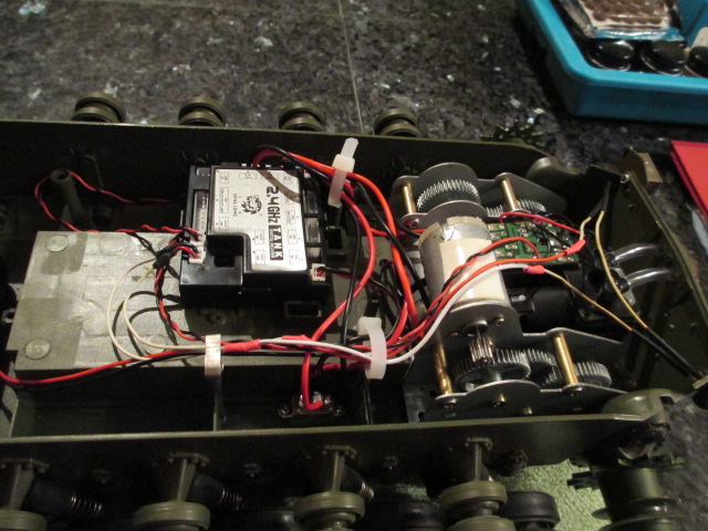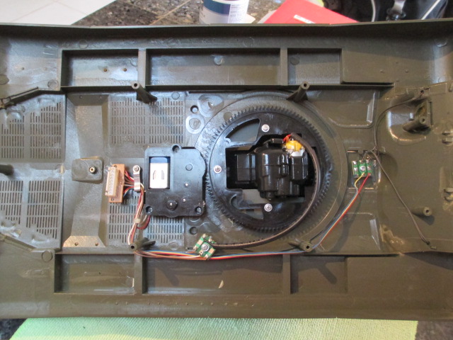 Outside of the smoker, it wasn't so bad. One loose solder job on the On\Off switch and drilling a couple of tiedowns to screw into two of the leftover mounting posts for the old RX board left only the metal cable clamp which was a post screw as well. Then it was just a lot of plugging things in and routing through the cable tidys. I'm not going to open it up again until the new smoker from Artistic gets here next week. I got one of those clear jobbies like as came on the 'Palace'. I sent a 'Heads Up' email to Oz Armor as well where I purchased the defective one from. Can't be too mad at them, 'bad HL smokers' are to be expected. While I'm waiting, I'll touch up the Commander and paint assemble the new .50 cal and some detail bits I will be using and reusing.