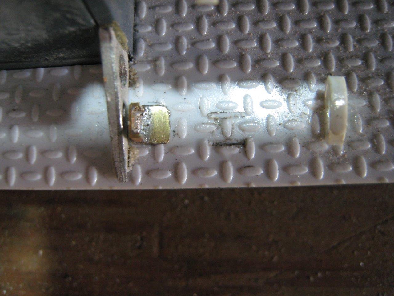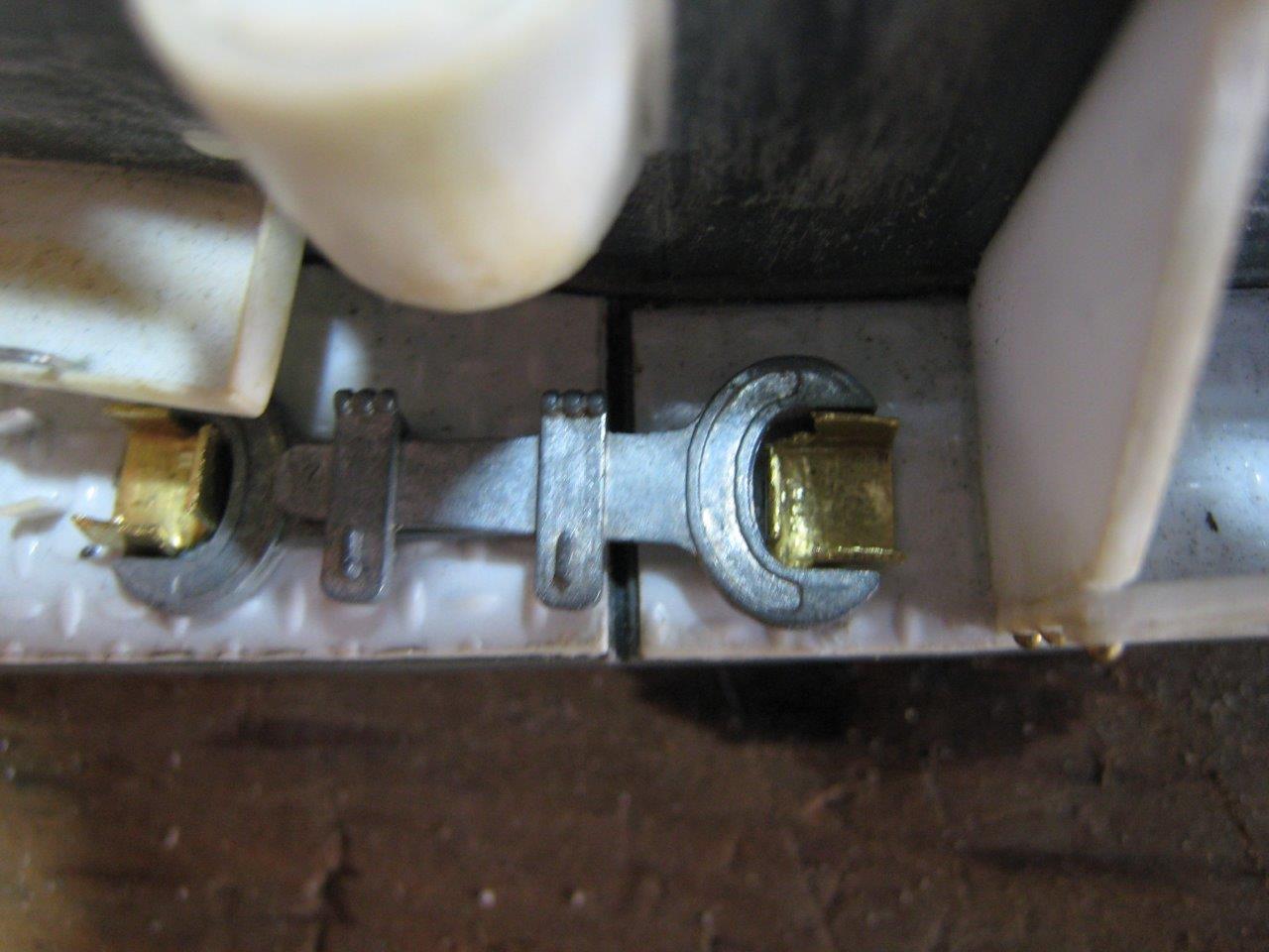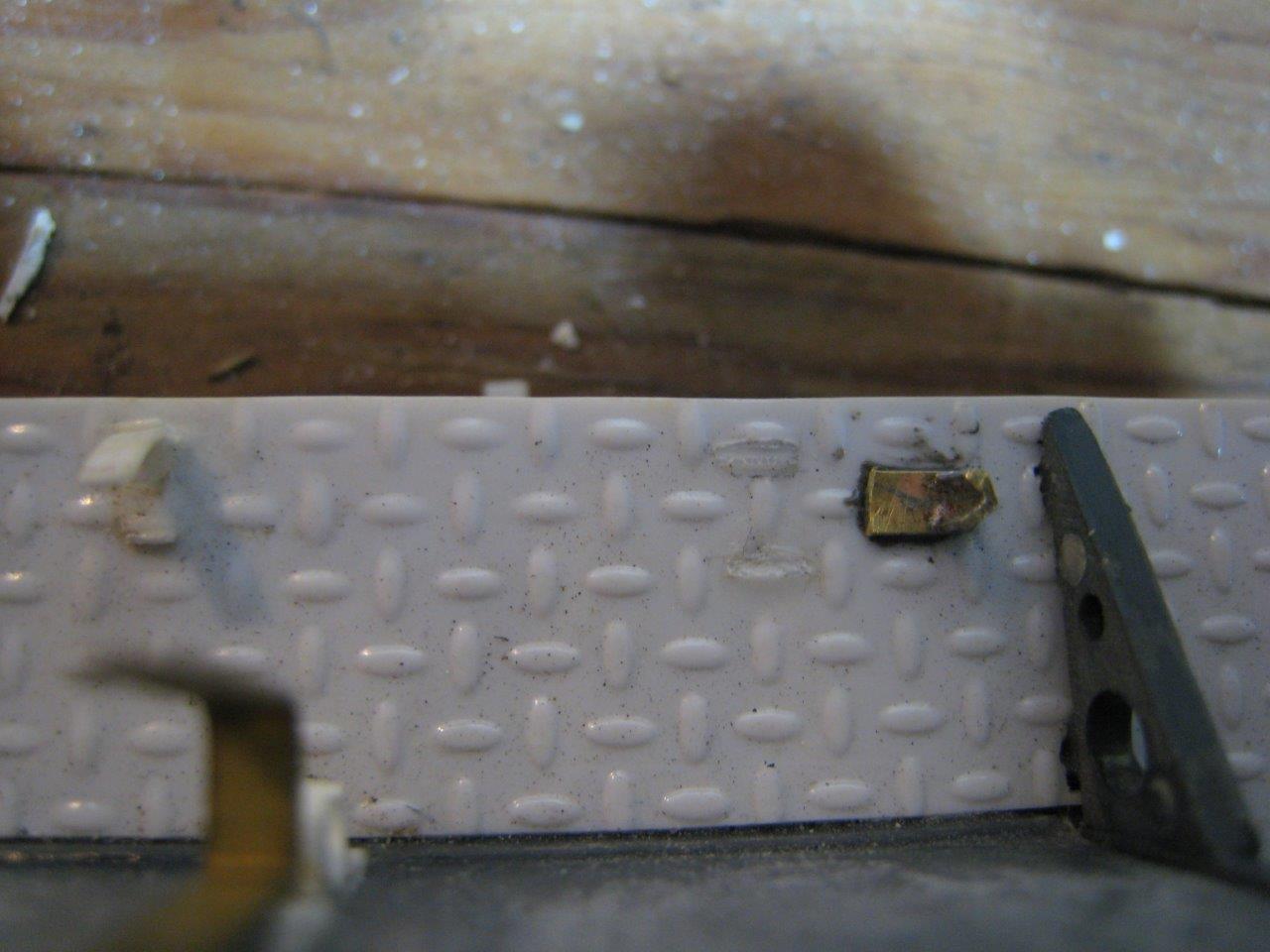 Time to start getting the tank ready for primer and paint. That means replacing some of the bits that broke off the fenders while I was testing the tank. A couple of straps came off, and I decided to use this opportunity to make a few of the brackets that hold the track tension wrenches and the handle of the digging bars. The digging bar brackets are angle and channel brass soldered to brass strip and glued using JB Weld.