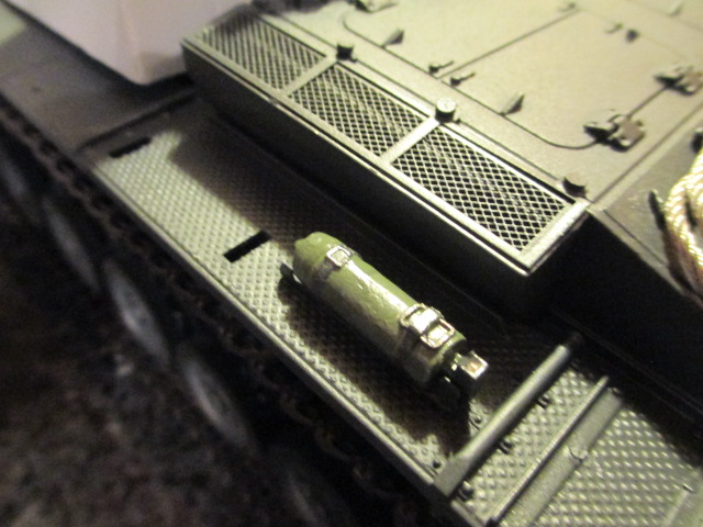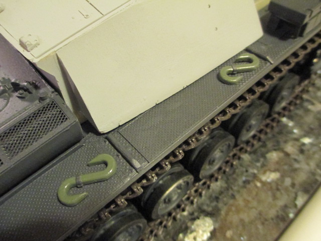 Thank you, my Friend. Tools are always fun. I went with an Olive Grun to help pull them out a little from the sea of Panzer Grau that represents the main color on this vehicle. The mounts are in the same grey so Tri-Tone Tools. ;o) ( the wooden handled ones at least ) I'll add some wear on the edges and weather them with the rest of the paint. They are metal so a little file action gives a nice metallic sheen like they've seen some use. I was thinking that the deck will be upside down and anything sticking up like the jack mount or the aerial trough might break off. The trough needs to line up with the aerial anyway so I might add that piece to the casemate early to see where it goes.