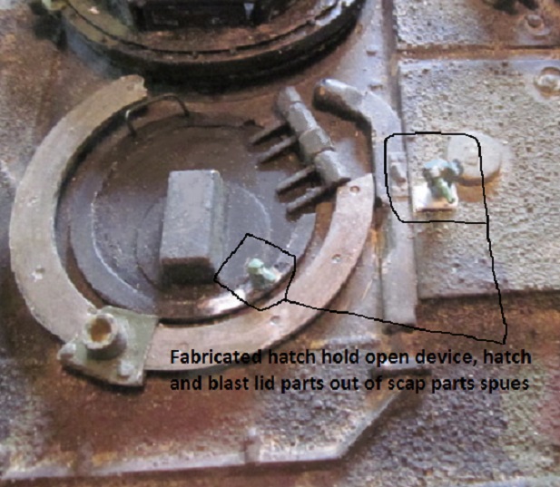 To return the favor :) here's one for you that appears on Abrams with the loaders mg shield. Looks like they also added stops to the skate rail to keep the loader from shooting parts of the tank he can't see when using the guns scope while he hides behind the shield and a notch in the hatch lip to clear the left side stop :D pic is from an A1 Abrams with the tusk kit installed but I guess the stops would come with all loaders shield kits. :eh: