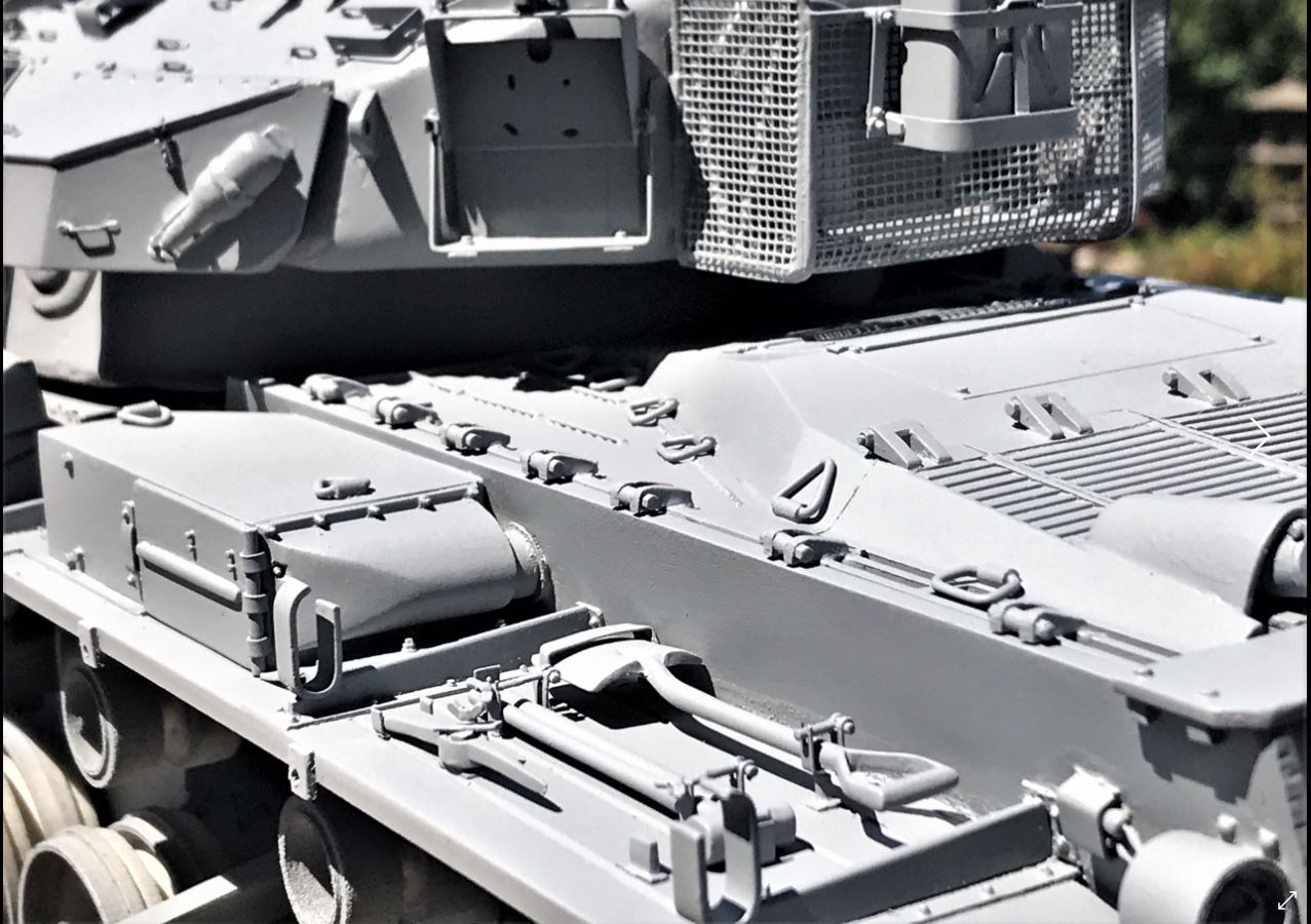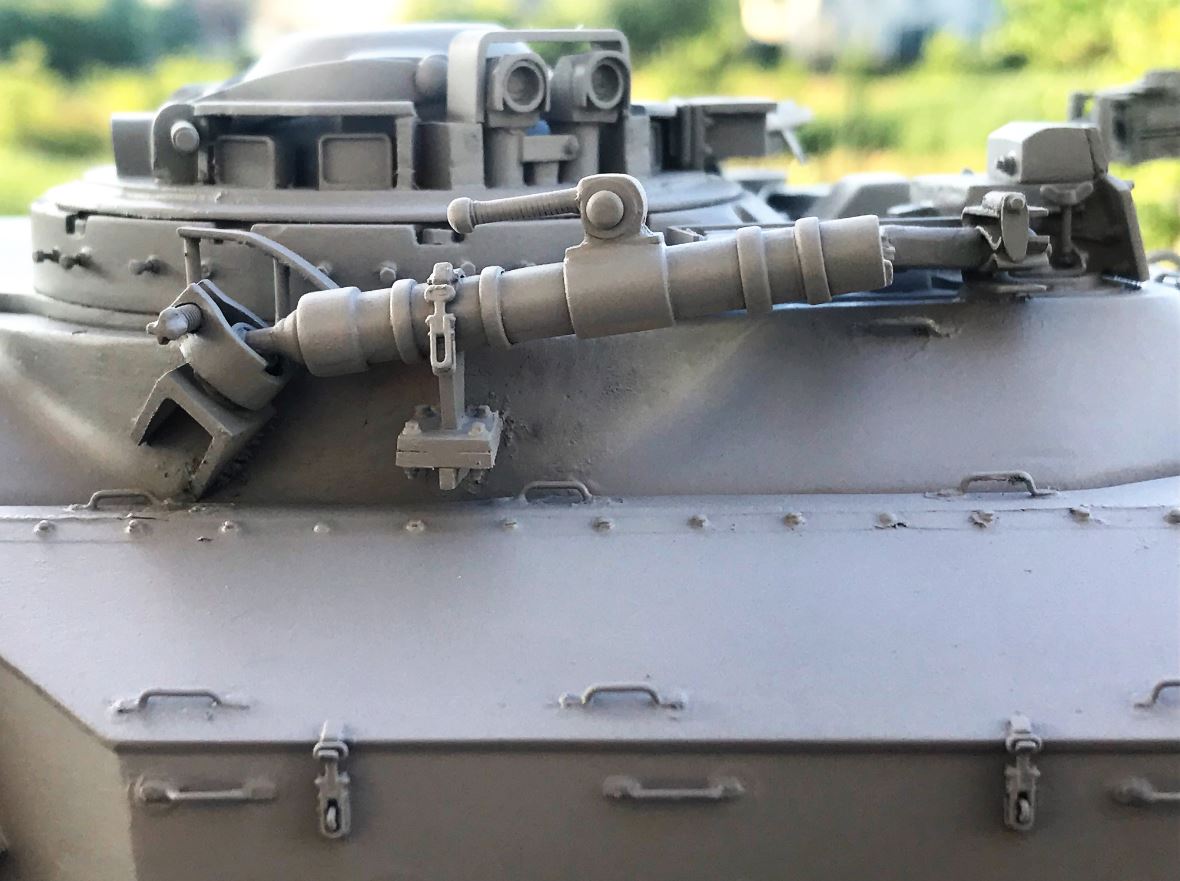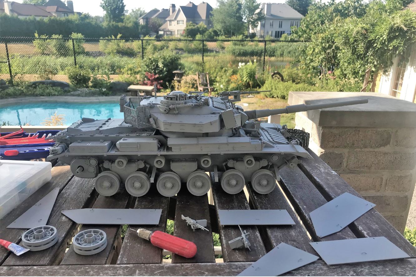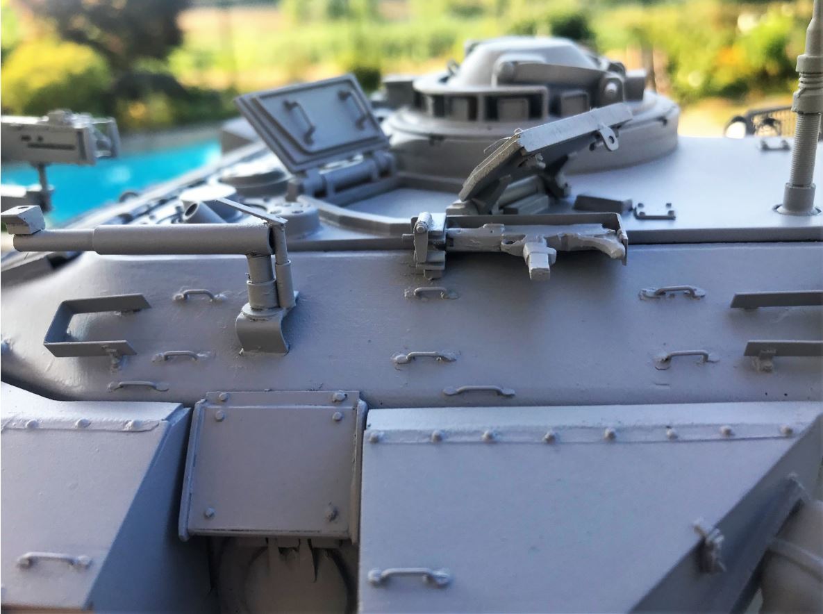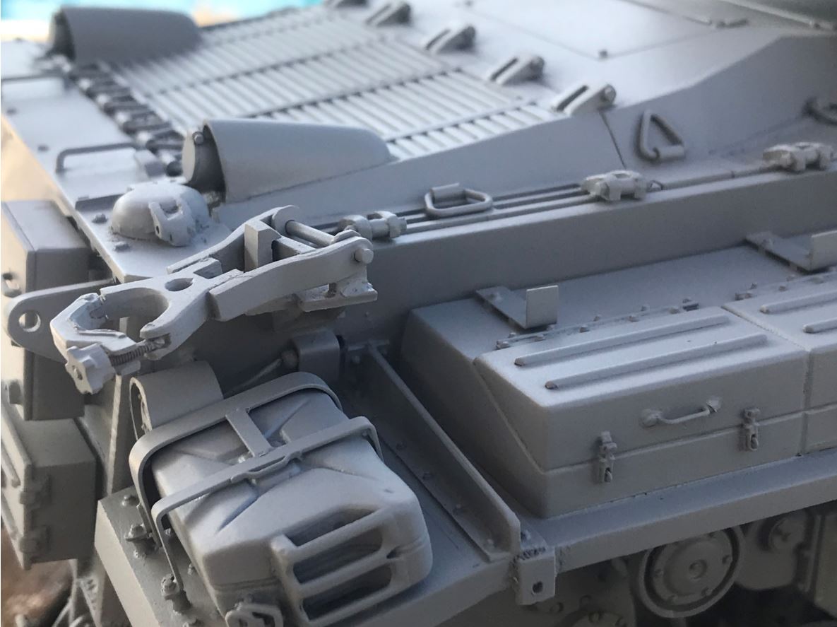Here the second grey primer coat is applied. The tank is now ready to be given its IDF Sand Grey and Golan earth pigments.
