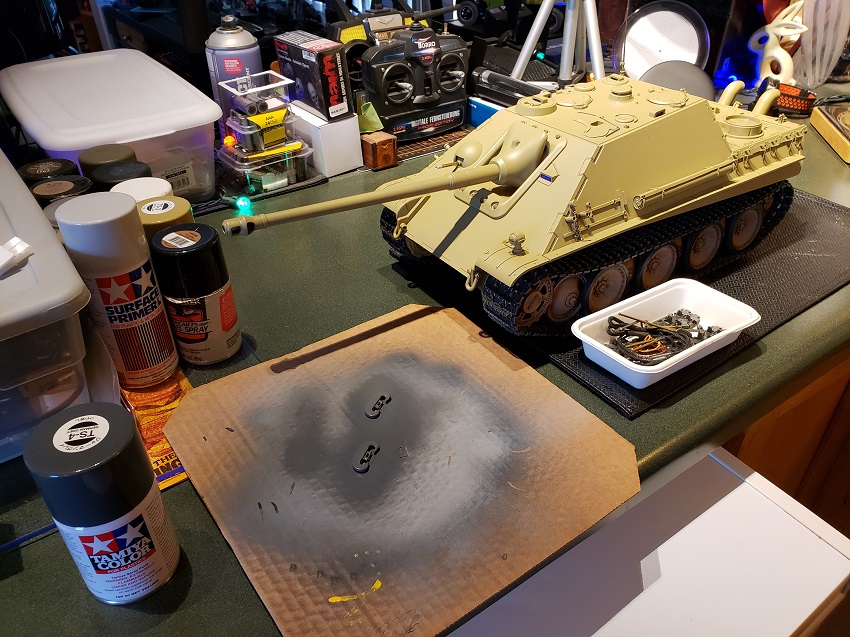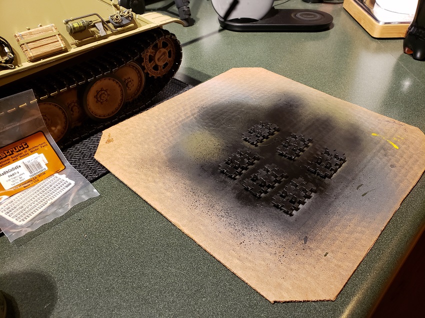 I don't think I have done tracks the same twice. Plastic tracks I leave alone. For metal tracks, I always used a Rustoleum primer (gray for US, red for DE, whatever for RU). Over the primer, I have tried the gun metal of the brands above, black, even--what a hoot--"steel." The last set me to