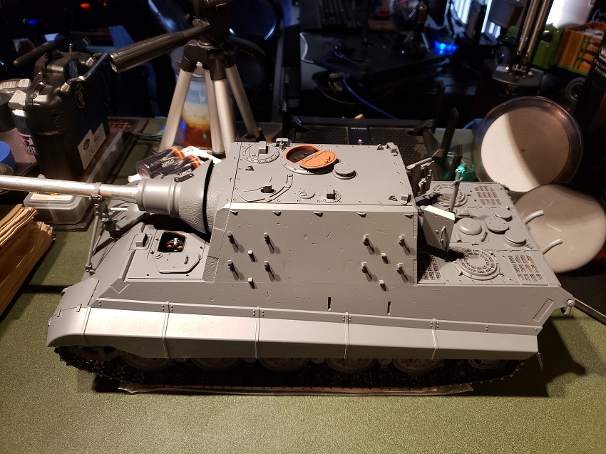 I mentioned it earlier in the Build. I'm going with a dark grey because of all the B&W newsreel footage and _wartime_ photos of these monsters in real life. Otherwise, I would have went with the Dunkelgelb or left it in Rottbraun primer or maybe even camoflauge. The black barrel will be an add on of my own as well. What paint scheme or primer do you plan to use on yours, Jhamm?