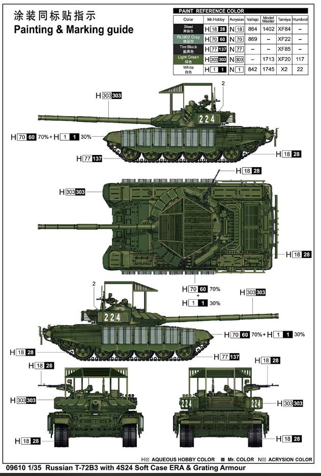 Amazing box art on the latest Trumpeter 1/35 kit 09610 of the Russian T-72B3, featuring a turret throw of a T-72 blowing up in the back. The kit comes with cope (grating) armour but the decal sheet is not impressive, no Z or V or other sprayed graffities that we normally see. I think i will buy it just for the box art, although the kit can be useful as a guide to extrapolate the cope armour to 1/16 scale.