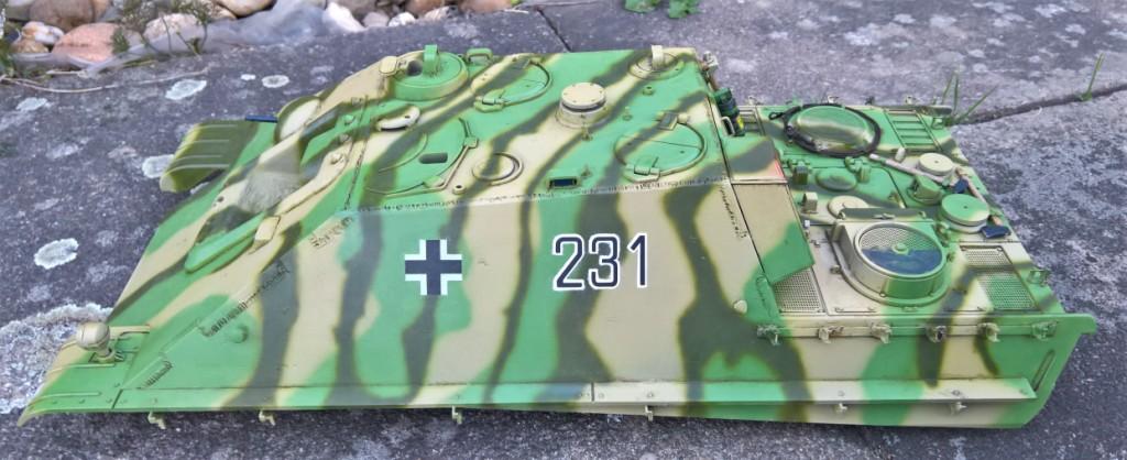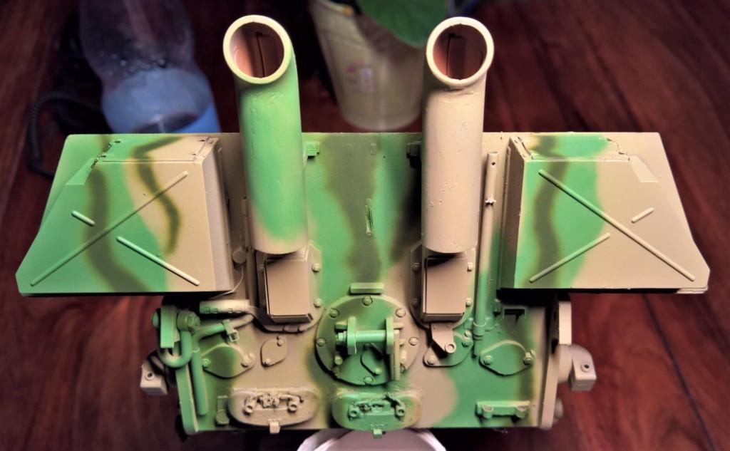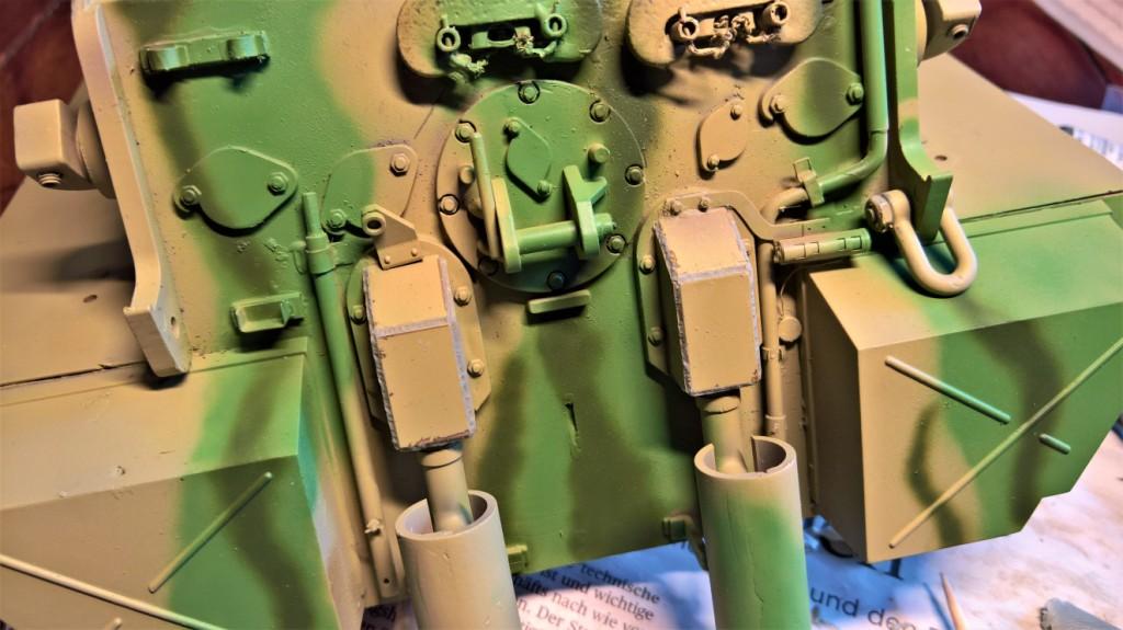 It Looks like summer break in this section? I can feel you, it was really hot these days. Made some Progress here, detailed the back side and painted the Camouflage. The jack will then cover the whole in the back. Unfortunatly I messed one Thing up, do you see which?