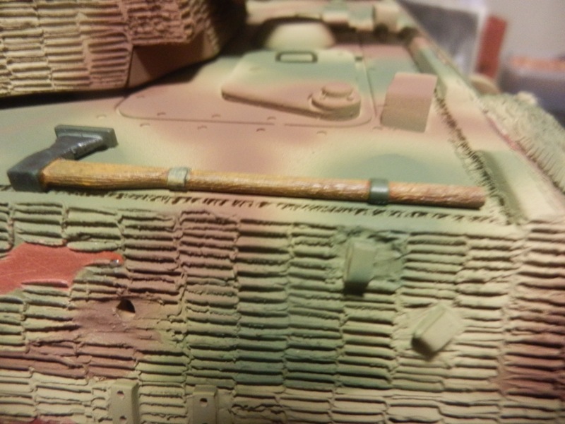 Got all the Panzer putty off, painted the tools with 'wood' paint on the handles, and used XF27 Black Green rubbed over with pencil for the tool heads.