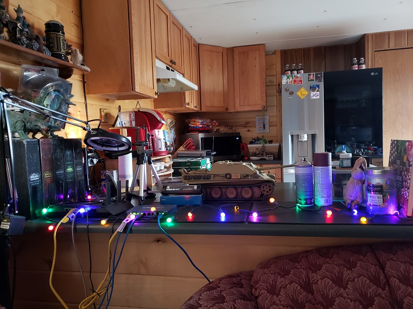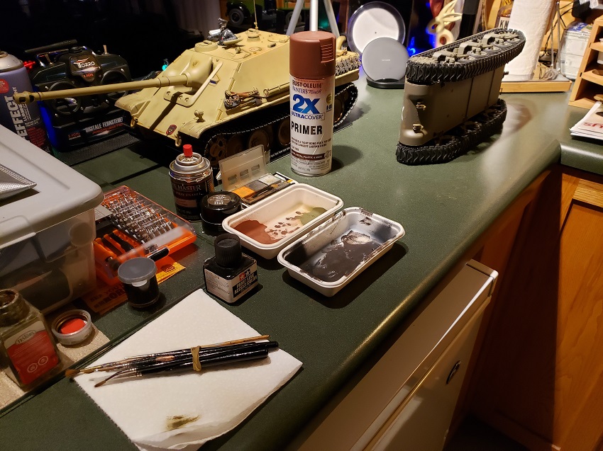 Counter work space cleaned up to begin final weathering and the all important UV spray over.....jpg