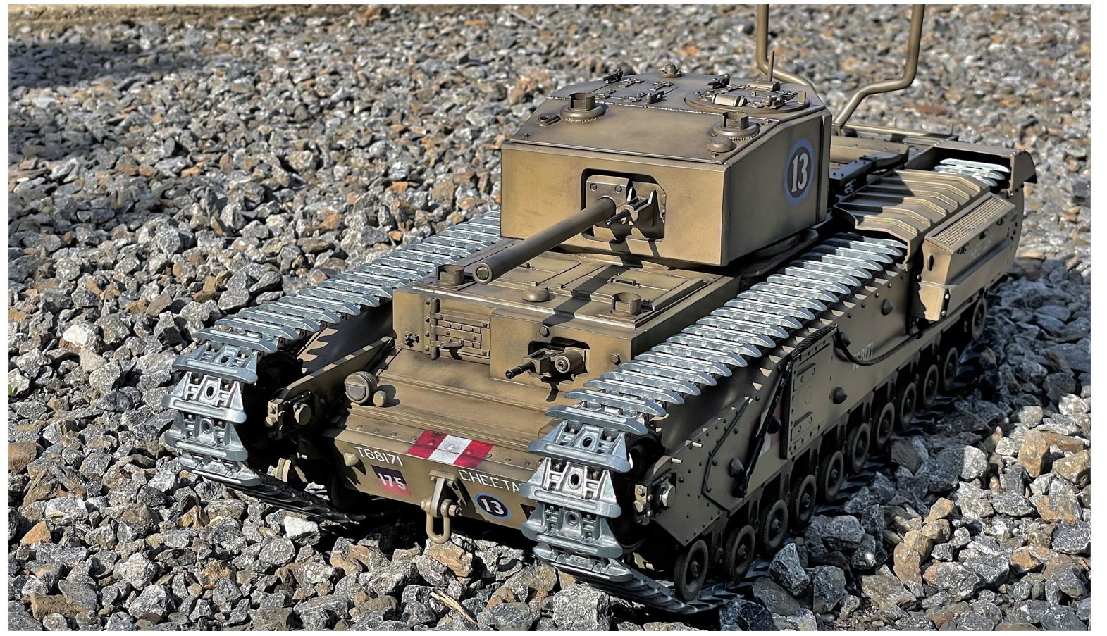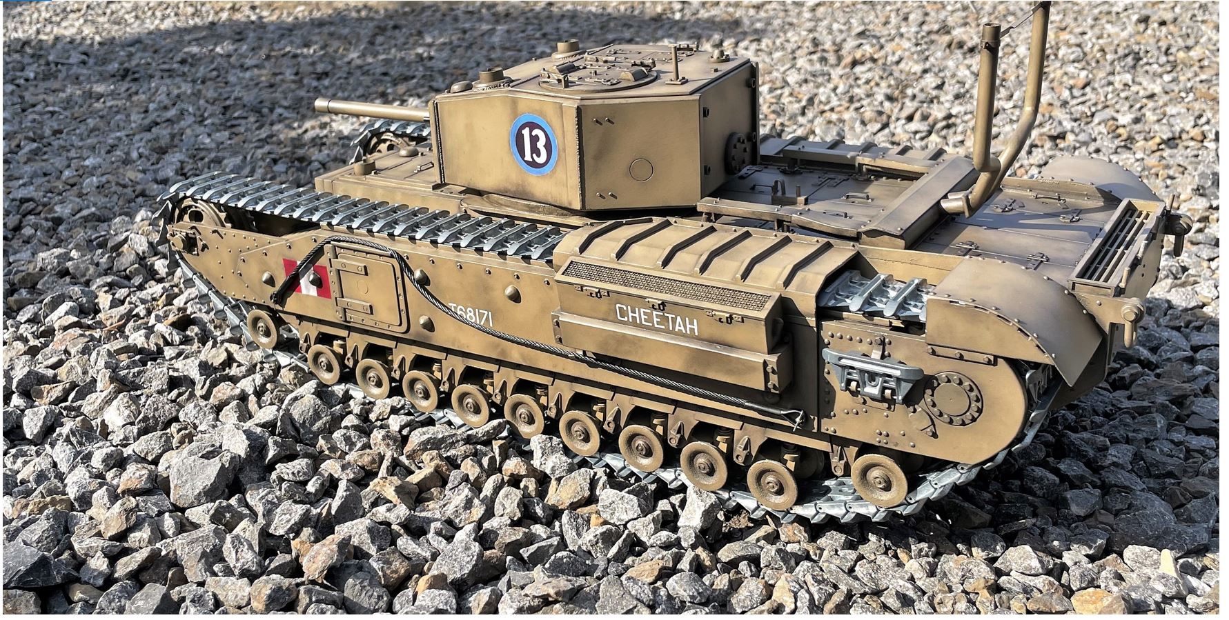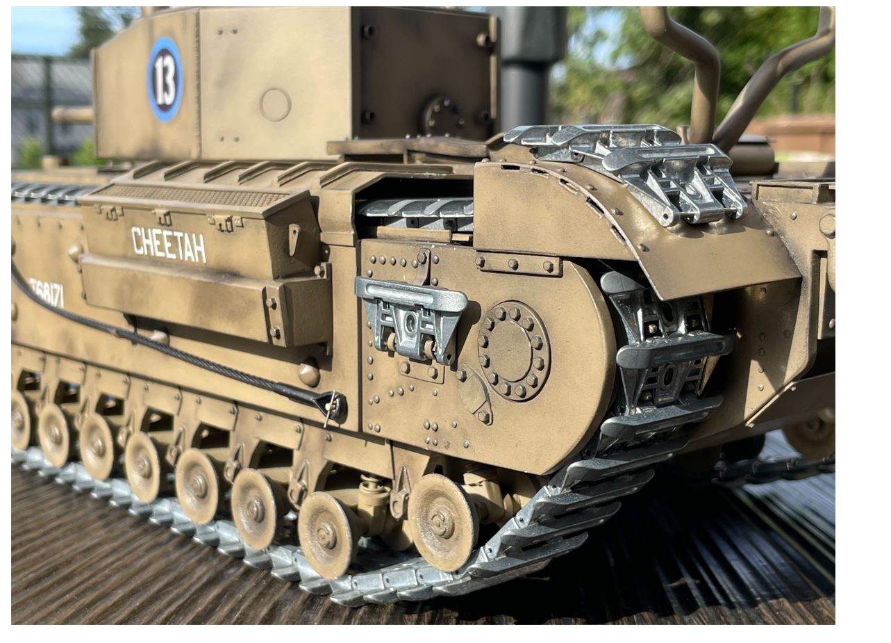 Although there might have been other RC 1/16 Churchill Mk III built in the past, this one is probably unique in its combination of elements, specially the DKLM metal tracks.