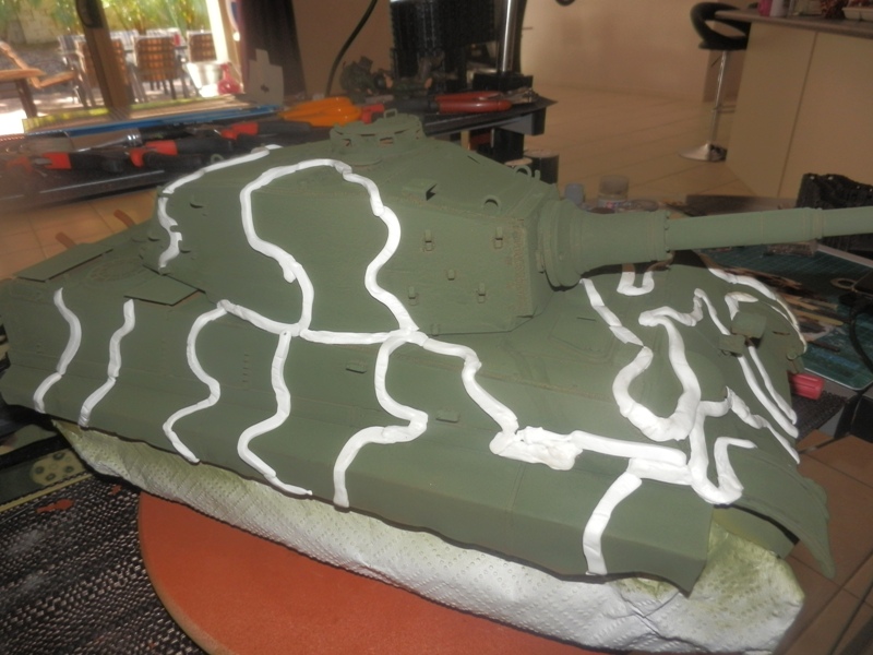 Maybe this can help you fill in the camo details on the missing (from the photos) side. This in one of the best paint done using the octopus camo I have seen. The weathering details on his tiger II are simply awesome and he did it on 1/35 scale!