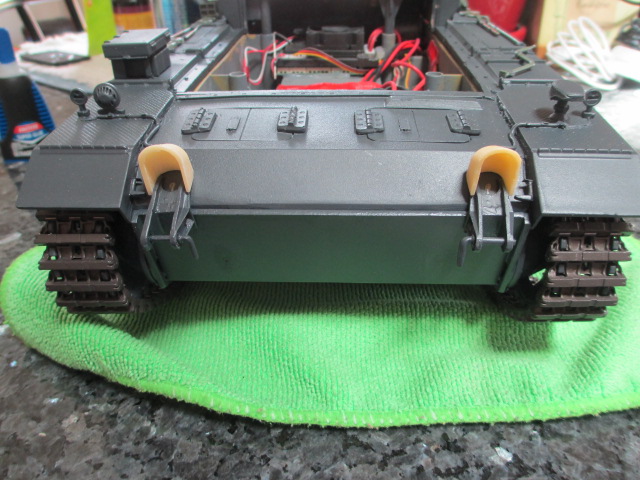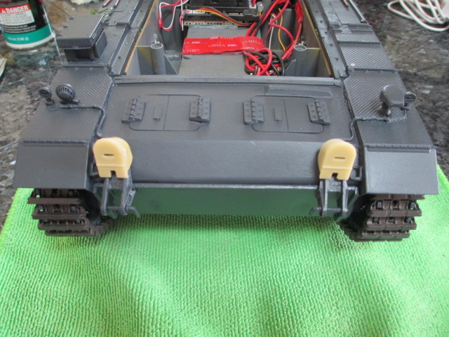 Nice Job Painless....Those gearboxes you acquired are pretty sweet if you have clearance for that electrical pod ...just noticed something...did this model of the Stug not have those Armor plates on the top and lower Glasis ?
