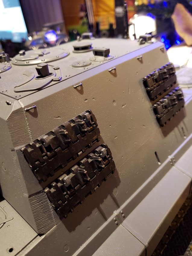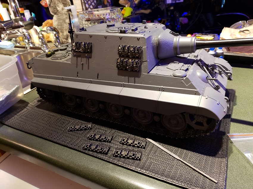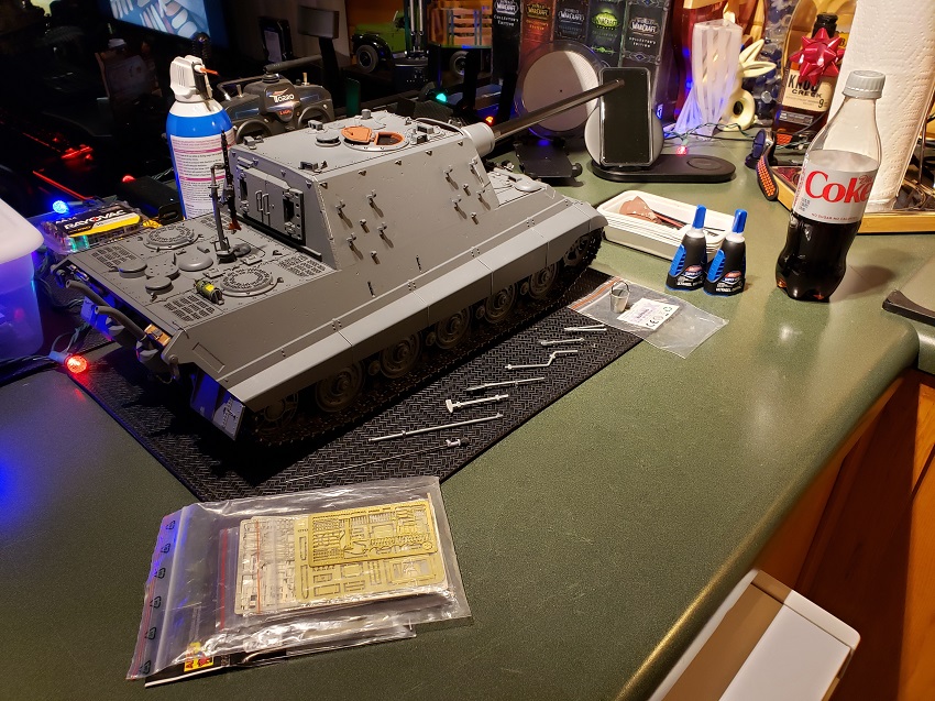 Managed to get my aging Charger to charge up the 5000NiMh I use for the Jagdtiger. It is tricky to get it to charge that size battery fully so I am in the Market for a smart charger. I have a couple lined up, an IMAX B6AC and an EHX EZPro Duo 1. Any advice from you guys is always appreciated ( I read the charger thread in ELECTRONICS which is where I got the idea for the IMAX charger ) I was on pins and needles hooking everything back up. It has been three months since I started the TD. Fortunately, everything roared back to Life and nothing fell off. I am still disappointed by the lackluster Smoker from Taigen. It is better after I had worked on it earlier in the build but still not what I expected performance wise. I am considering a Tarr Smoker from Poland ( another long wait ) or I see the new Smoker from HL on the market. That one looks interesting but is a dual wire plug in unlike the Taigen which only requires one wire and is controlled from the Remote. Again, ideas? ( I am already using an excellent aftermarket smoke fluid and have adjusted the wick inside the current Smoker ) The TD is live again so time to make any final adjustments before finishing Details and the Commander.