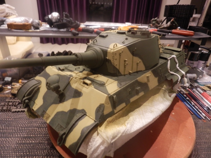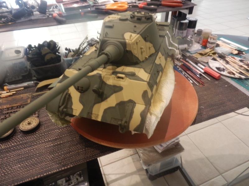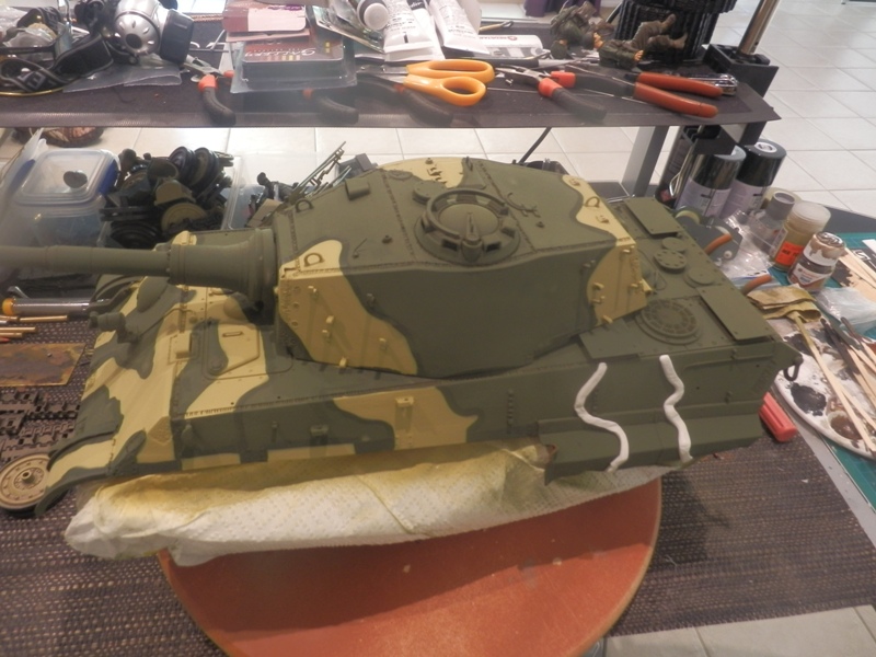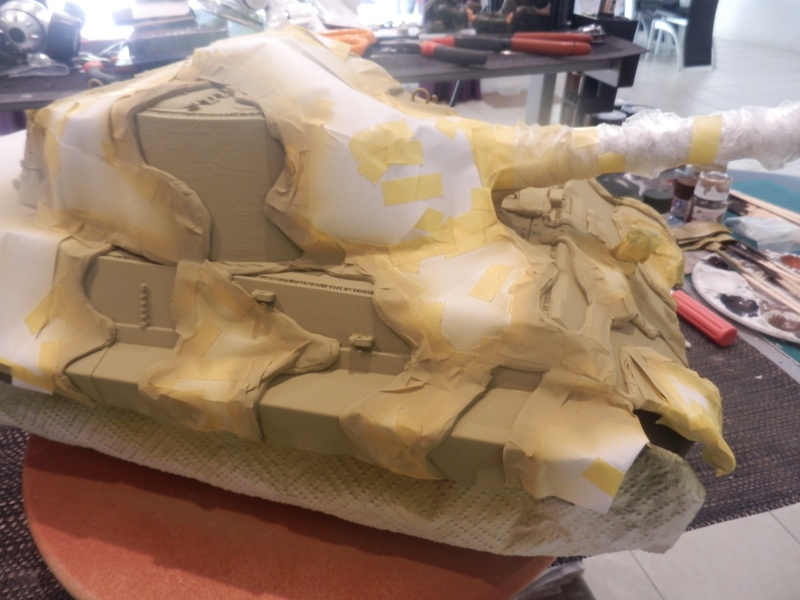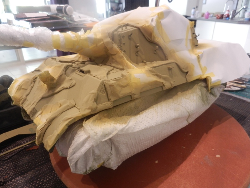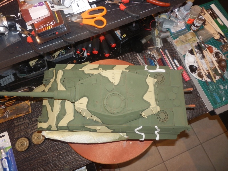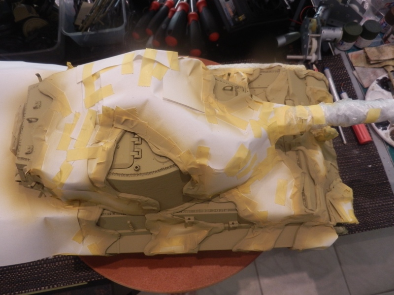 Got the last patches of Gelb masked off, leving the engine deck & rear plate green I think.