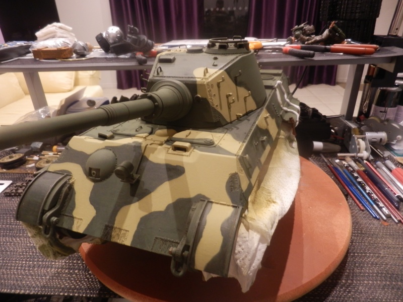 I still have the last side Gelb patches to do, and I have decided to leave the engine deck and rear plate green only for now until I see how it looks with the Gelb completed on the rest of him.