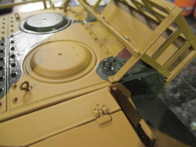 Thank you, I'm glad you like it. The one side needed a little more of the remaining yellow left to balance out all of the green and red on the tank. I also left a corner of the front deck untouched for the same reason. ;o) There should be an equal amount of sienna, olive grun and dunkelgelb on it now laid out so as to break up the outline. Once all the details are in place and some weathering is done, it should turn out all right. I was confident and worried with this one. That's a lot of space to do with a brush, even big ones.