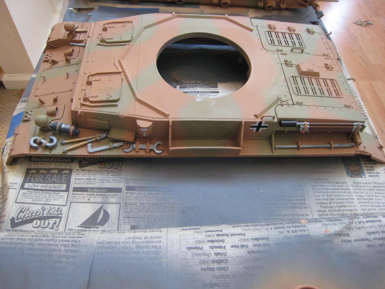 Thanks. Next plans are to hit everything with a couple of light coats of Dull Cote; lube all axles, bushings, and gears; reassemble it; and then dust it with with some Tamiya Desert Sand and Buff. That should finish the tank. I'm also going to replace the machine gun switch on the Taigen controller with a push-button. Just need some weather warm enough to do this stuff outside. Spray painting (rattle can or airbrush) indoors is a no-go.