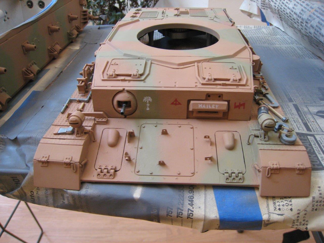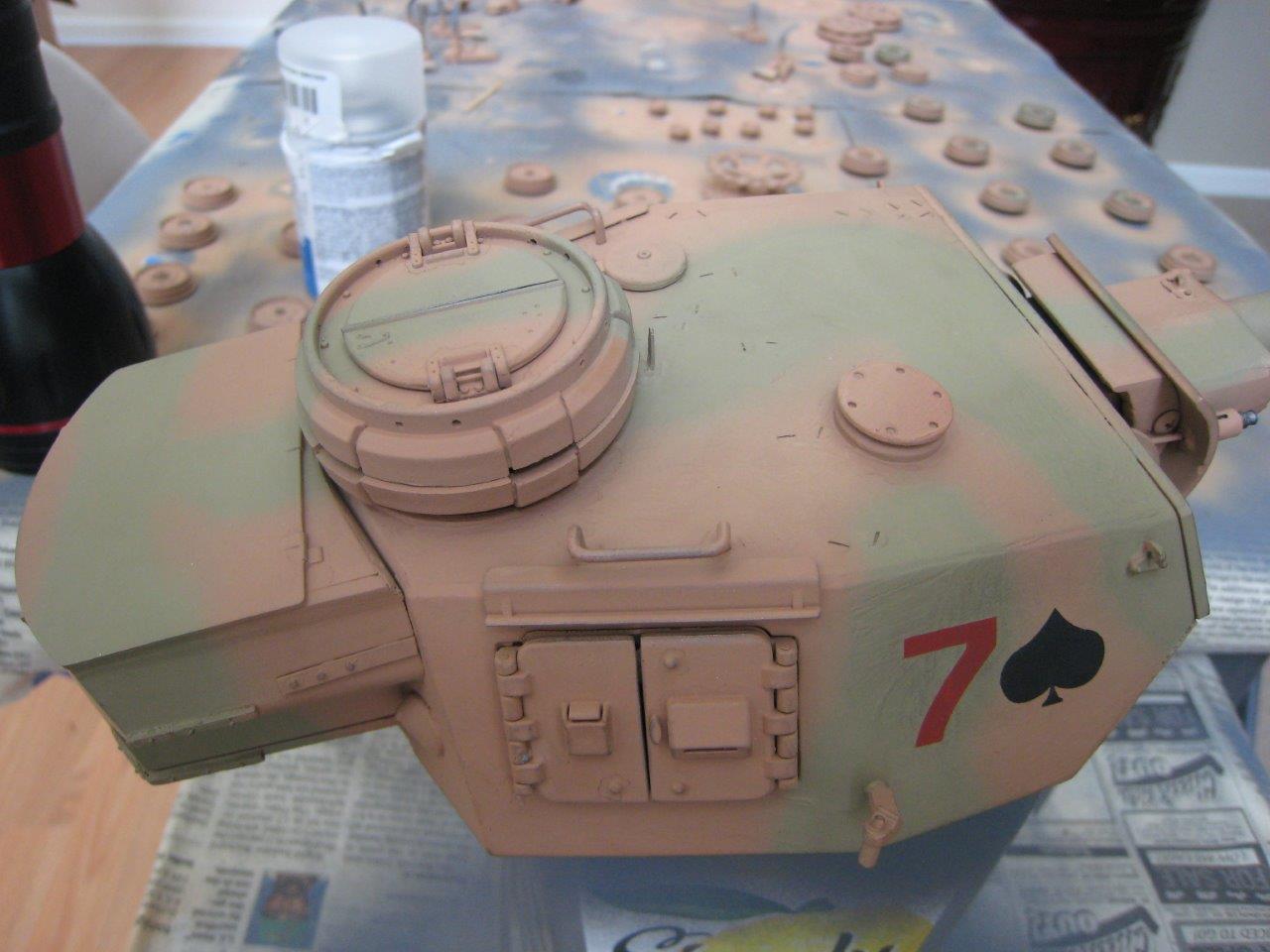 I did a little more work on the tank this weekend. I did a dark brown wash, but I’m not convinced that made much difference. I also did a dry brushing technique. Well, really, it was probably a dry rub (without the meat, coals, or smoke