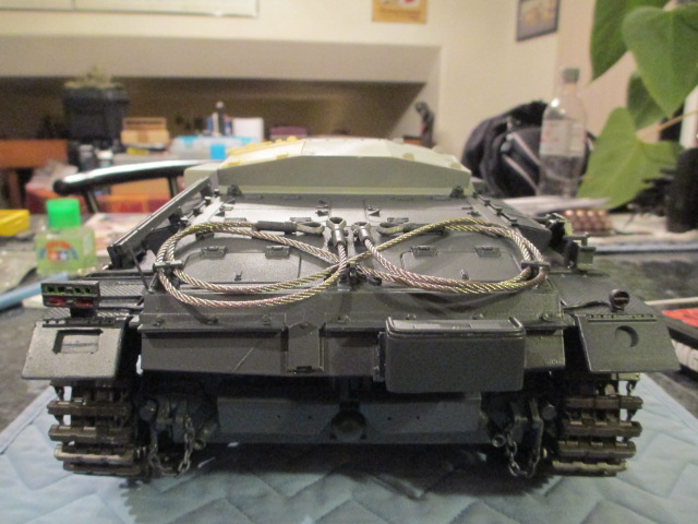 Alpha, an M1 Abrams will probably be a next year thing. The StuG is taking up all of my free time and next up is the 1/6 Stuart. This Winter, I hope to RC that 251 Halftrack. Depends on if I get the time. So, nothing in the Post today. Taking up the StuG, I'm pleased with the lower hull and deck. The Casemate was sitting up a little high in the rear and upon investigation, the fan mount for the Taigen MFU was the culprit. I could have removed it but this is going to be a weighty little tracked gun so I wanted to leave the fan in place. I did a cut out and clean up so that nothing touches the fan housing now. Pictures: