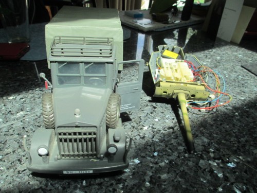 Nothing in the Post yet today. It's still early. I got around to ordering the actual hatch hinges from Asiatam today along with the Commander figure that I've had my eye on. I'll see to some extra fiber optic filament, the new LED and wiring and those radio parts I was mentioning, later this afternoon. That should cover every thought so far as long I do not mung up the main gun mount and IR. Speaking of that, a maint. crew equipped with heavy transport located a workable trunnion + gun and salvaged the Pz III turret from a wreck they had been scouting for parts. Pictures: