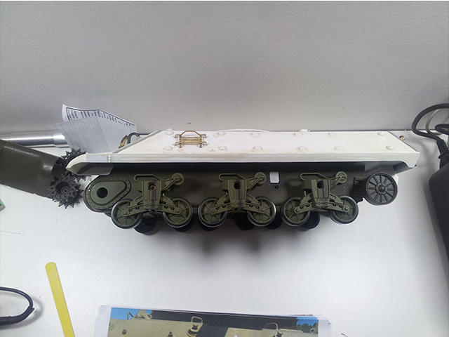 Sweet on the VVSS. Nicely detailed metal on the transmission cover as well! I've got to build one of those cable clamps today so your photo is extremely timely ;o)
