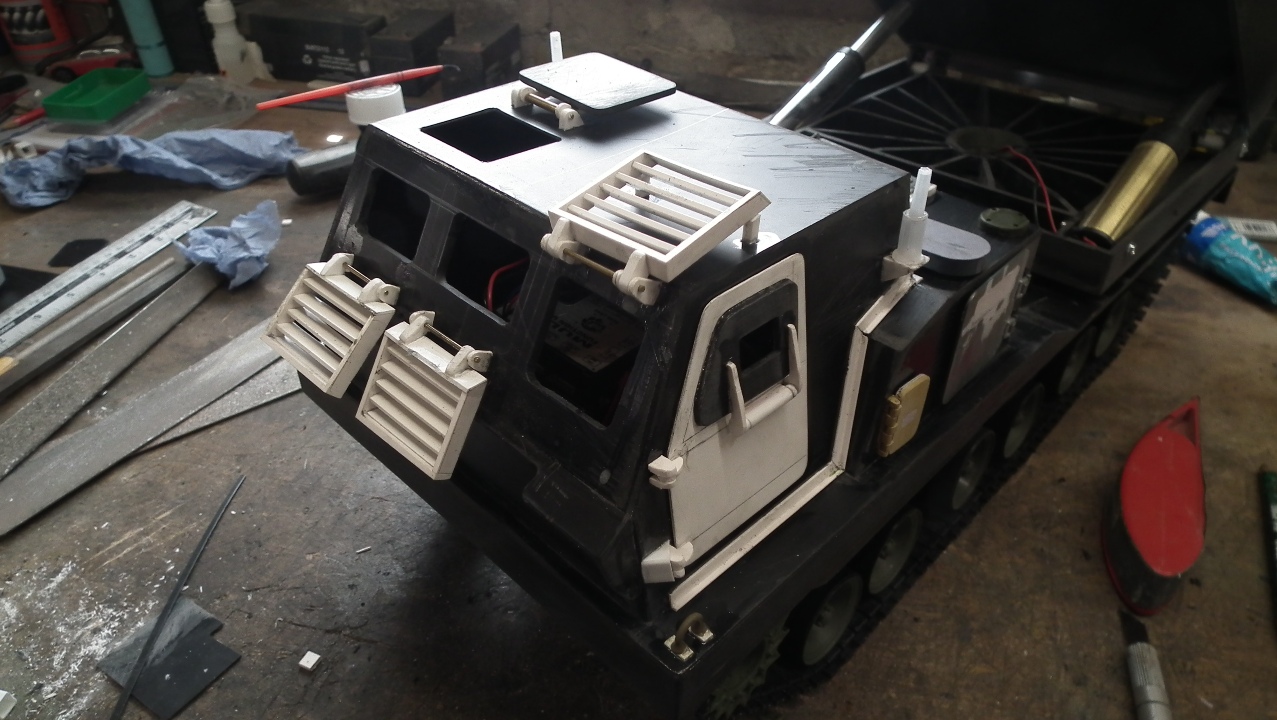 Well got a bit more done on hull details and also thought I might make a start on the launcher. What a pain in the !!***. to do. She has had her first chase around the lawn now and battle with the cat and now't fell off so thats got to be a good sign.