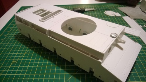 Enough for the evening, progressed the upper hull and started some detailing. Next job is the drivers viewing port- bit of filing required.