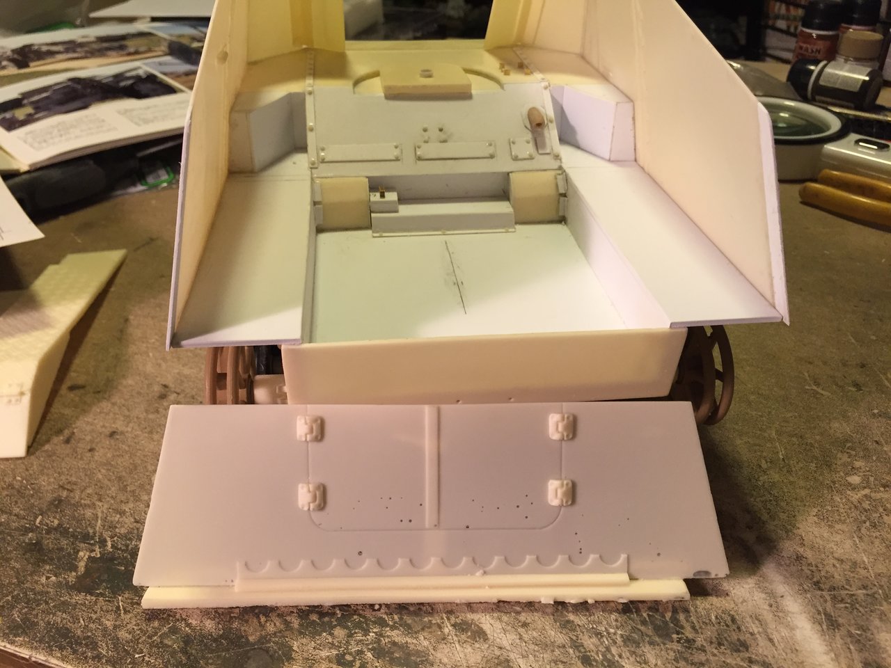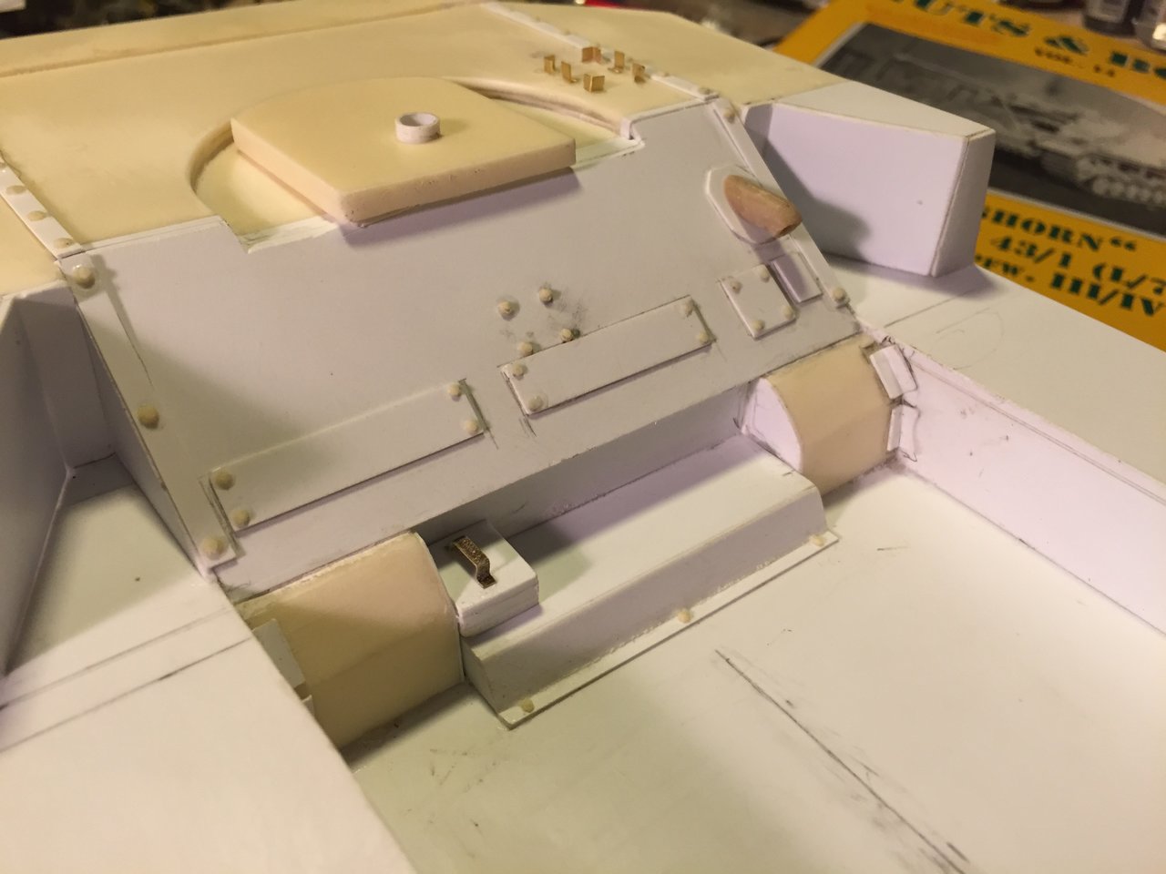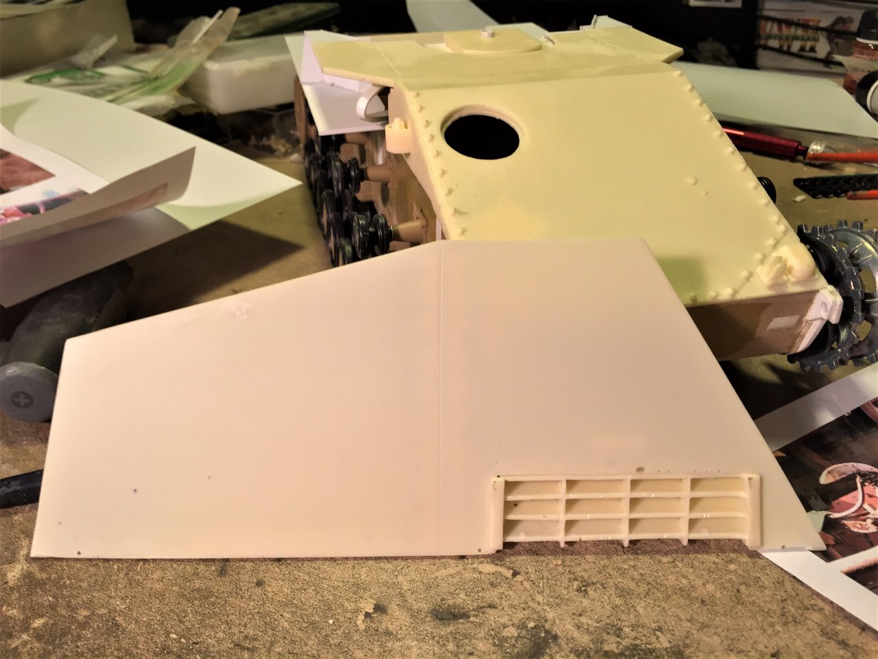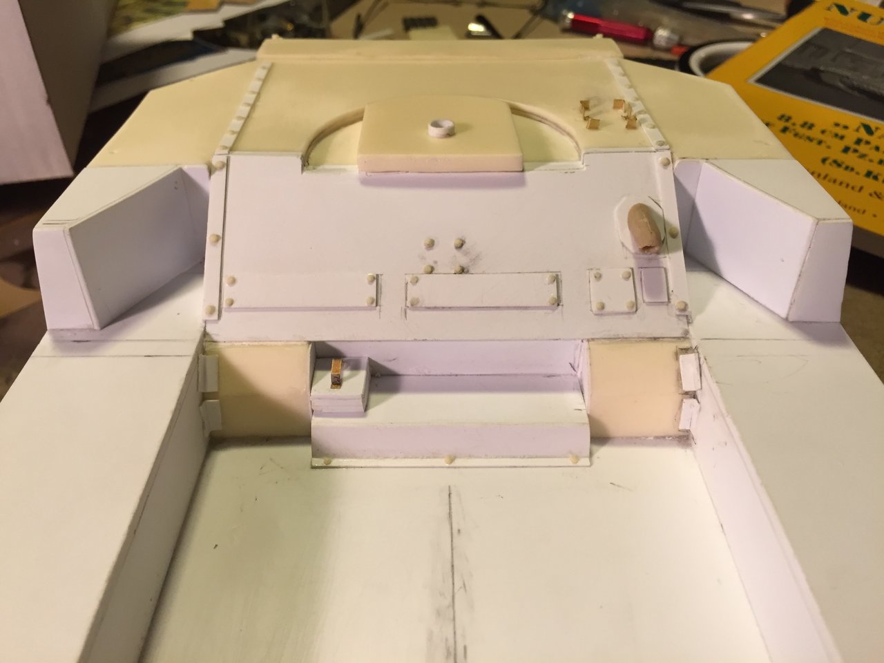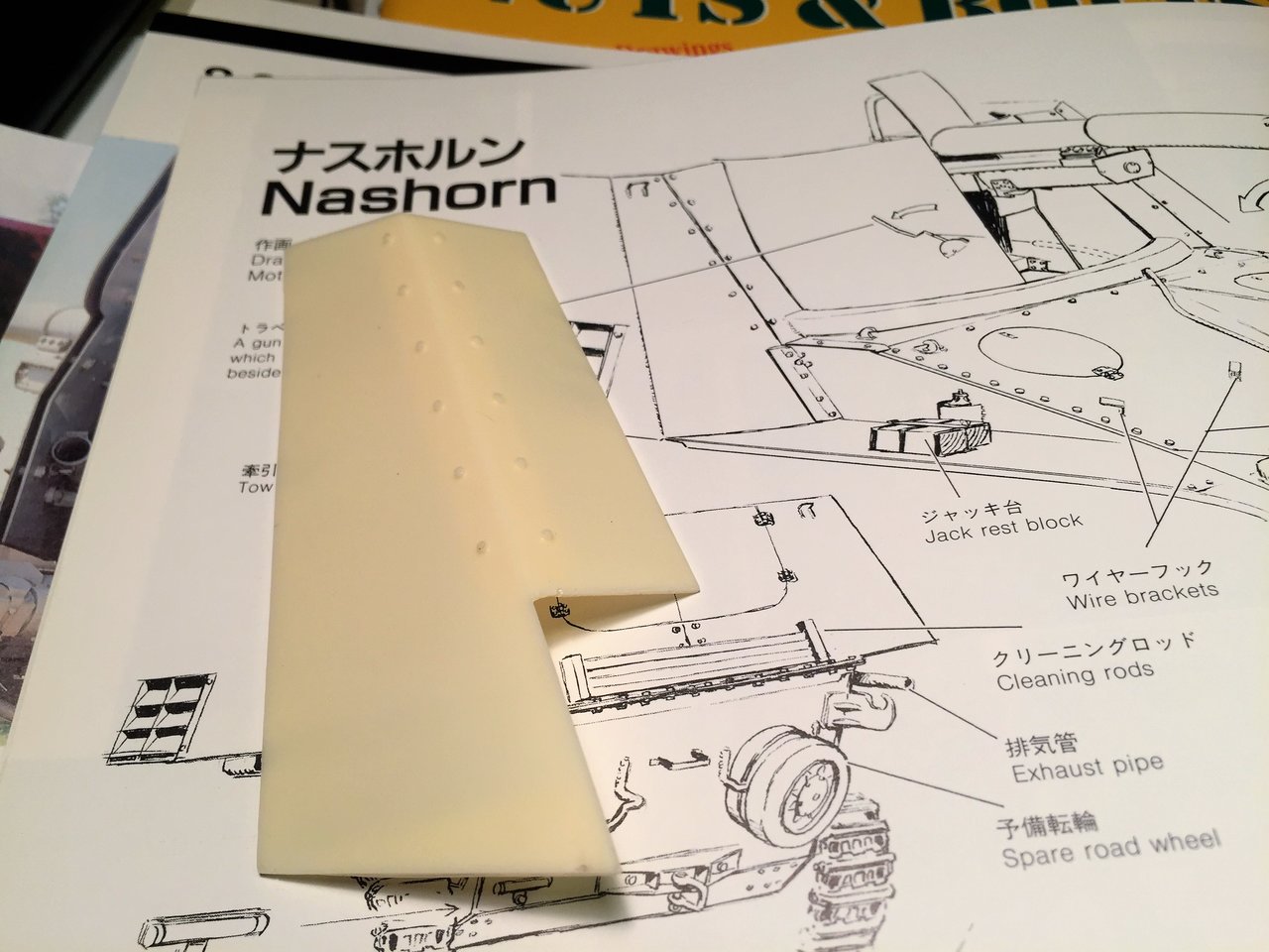 Alwyn, you are right, the front armor plate is not the right shape. When compared to the drawing in the book Panzers at Saumur no3, i can see that it is not supposed to be square with the front of the fighting compartment, it is inclined towards in interior and needs to be very tight with the gun shield with a curve. I think that part is actually designed for the Hummel and reused as is for the Nashorn kit. Looking at the instructions and kit box, it is supposed to be trimmed. I will wait for the gun and shield to be built to trim it then. I will need to study references further so that I do not make mistakes with the angles, they are tricky. Thank you for pointing that to me.
