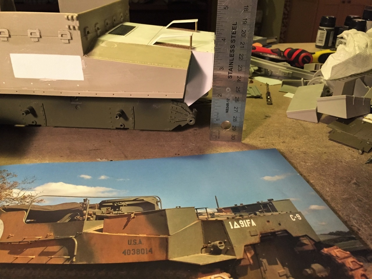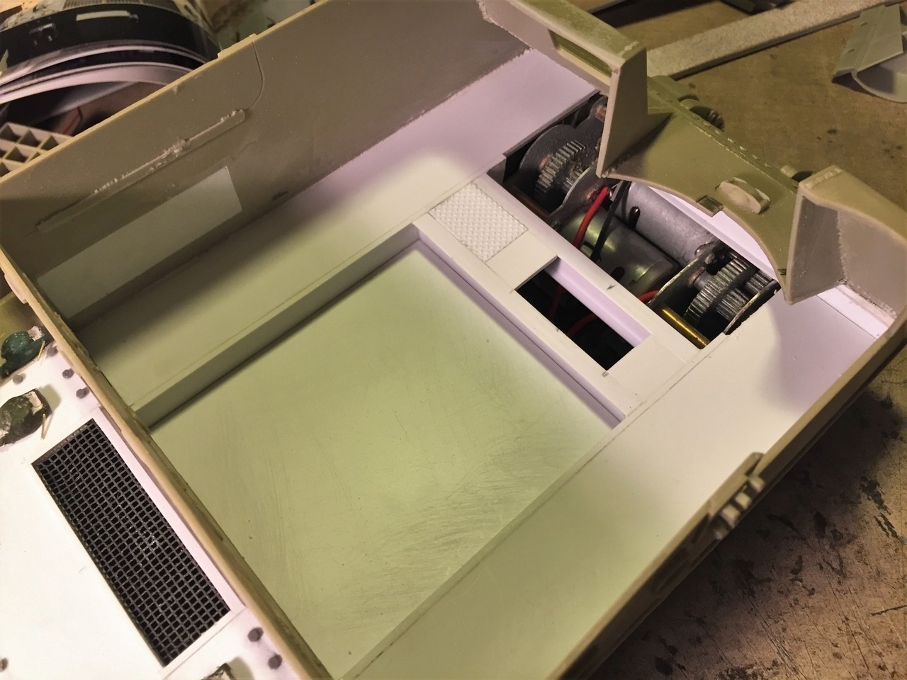 I will leave the detailing of the rear hull for later and will now concentrate on the fighting compartment, something I was looking forward to for quite a while. I needed to do a bit a research first.