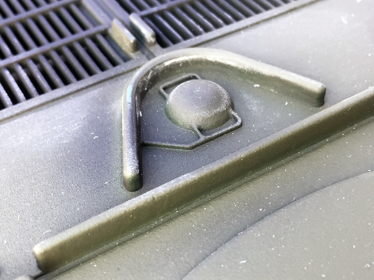 The top of the armor should be flat. The I-beam support the gun position well. Otherwise, the resin of the front hull could break at the slightest tumb pressure while manipulating the model, and the gun shields won't fit well.