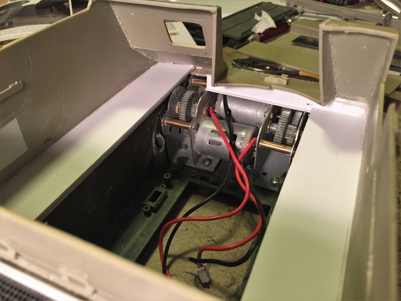 The HL lighting gear removed from the Sherman hull and getting ready for installation on the Priest.