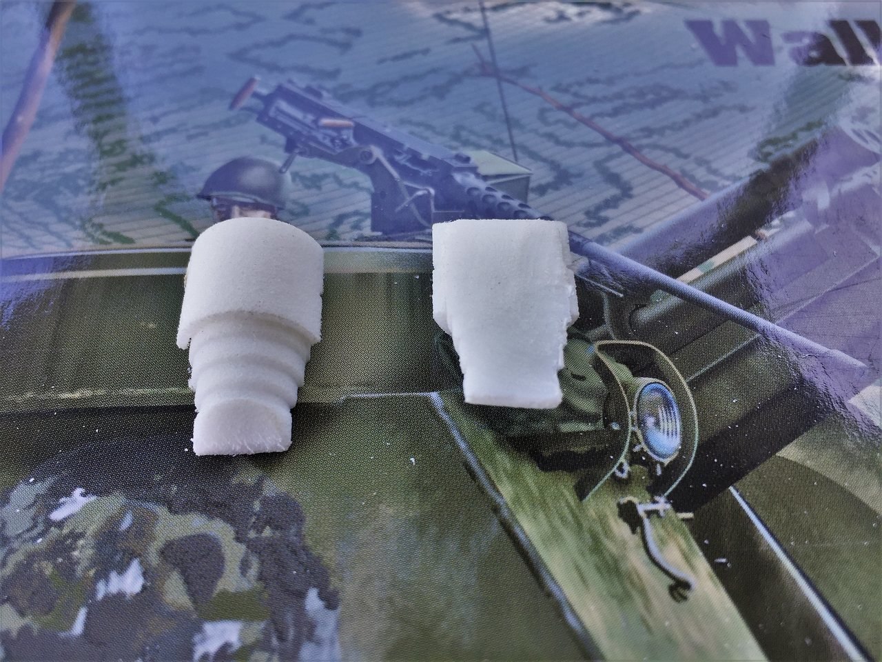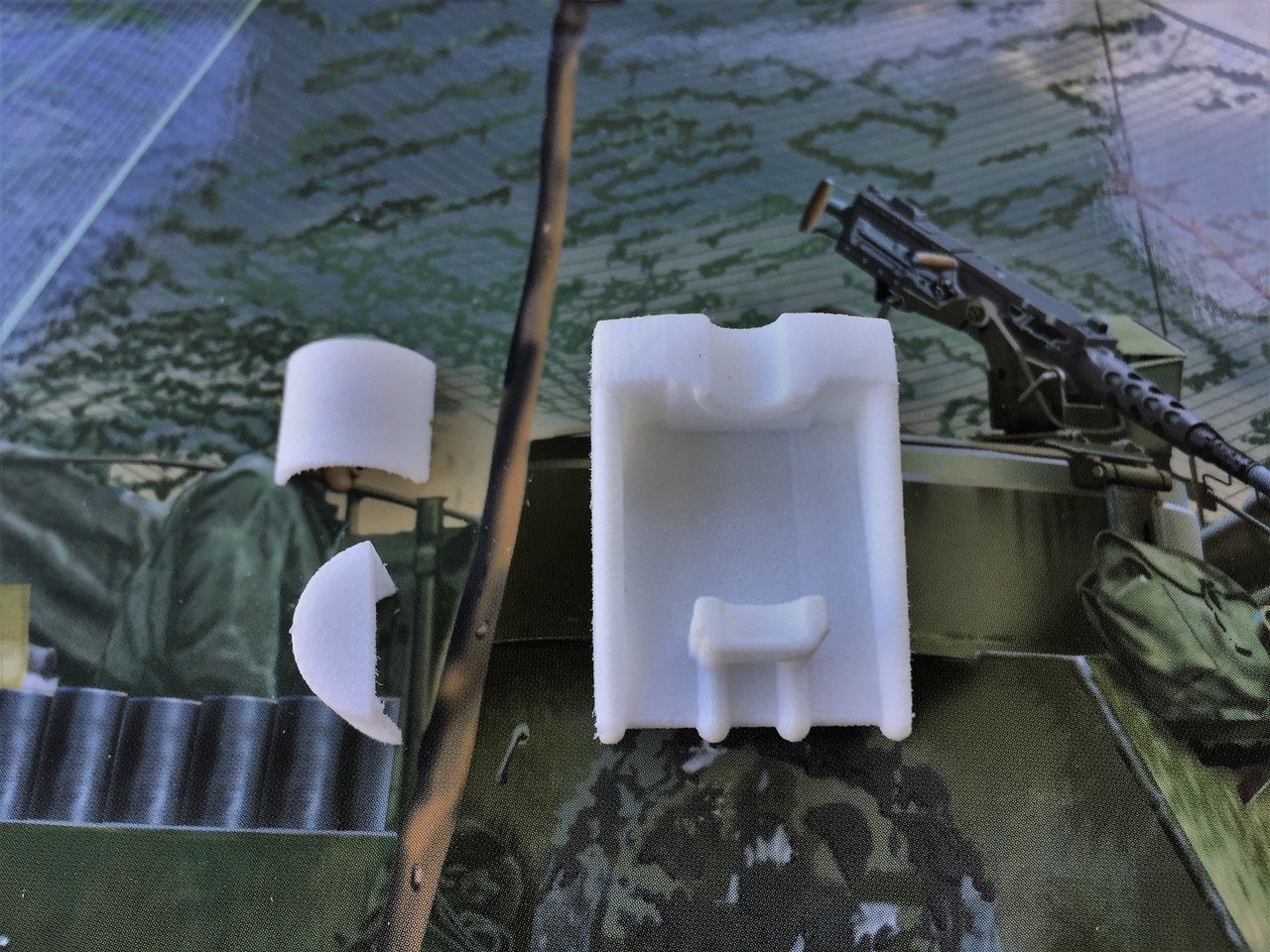 The gasoline caps were cut out of the Sherman hull, carved and given a single cast metal look. Its pretty basic and I will try to improve.