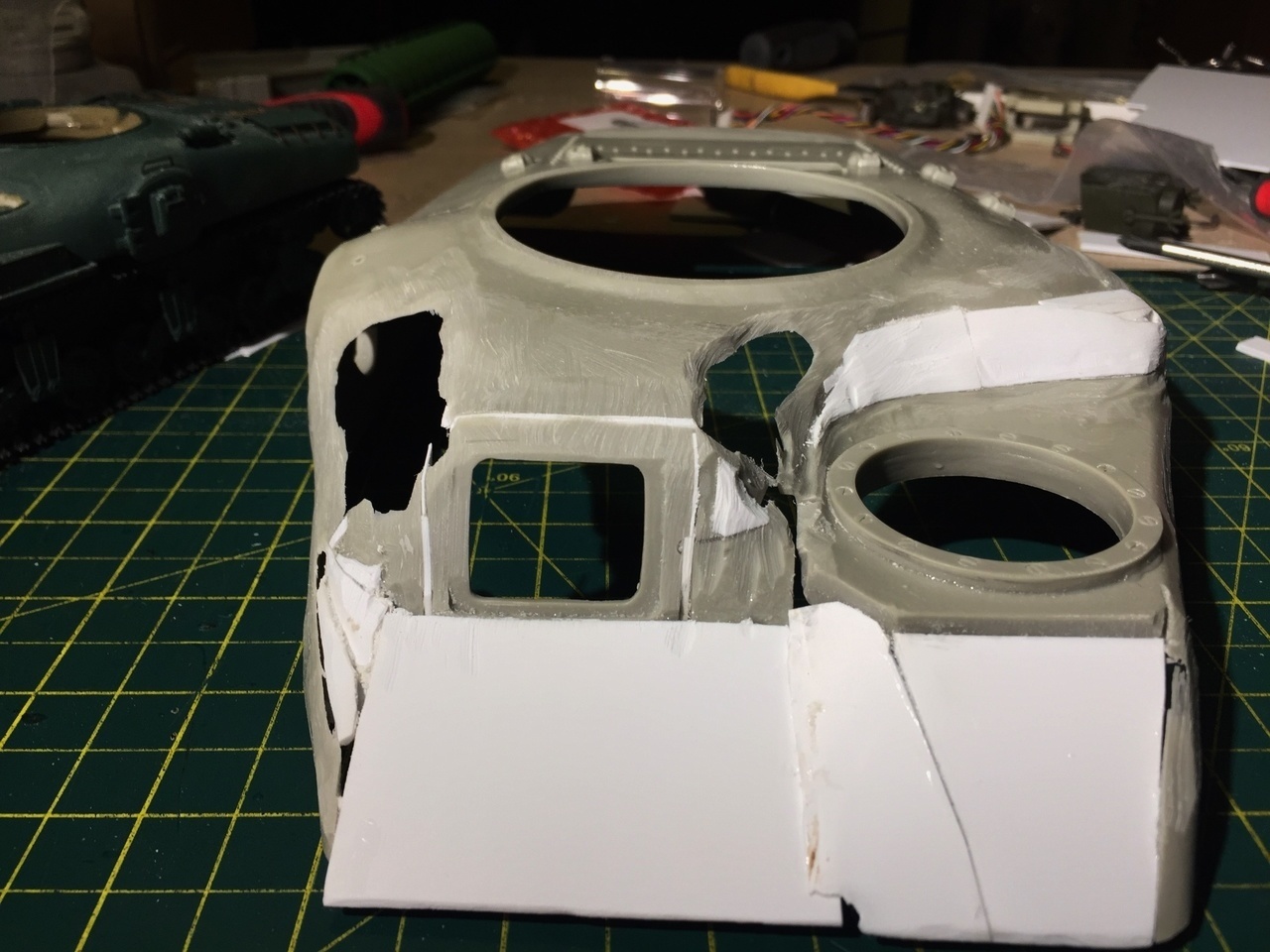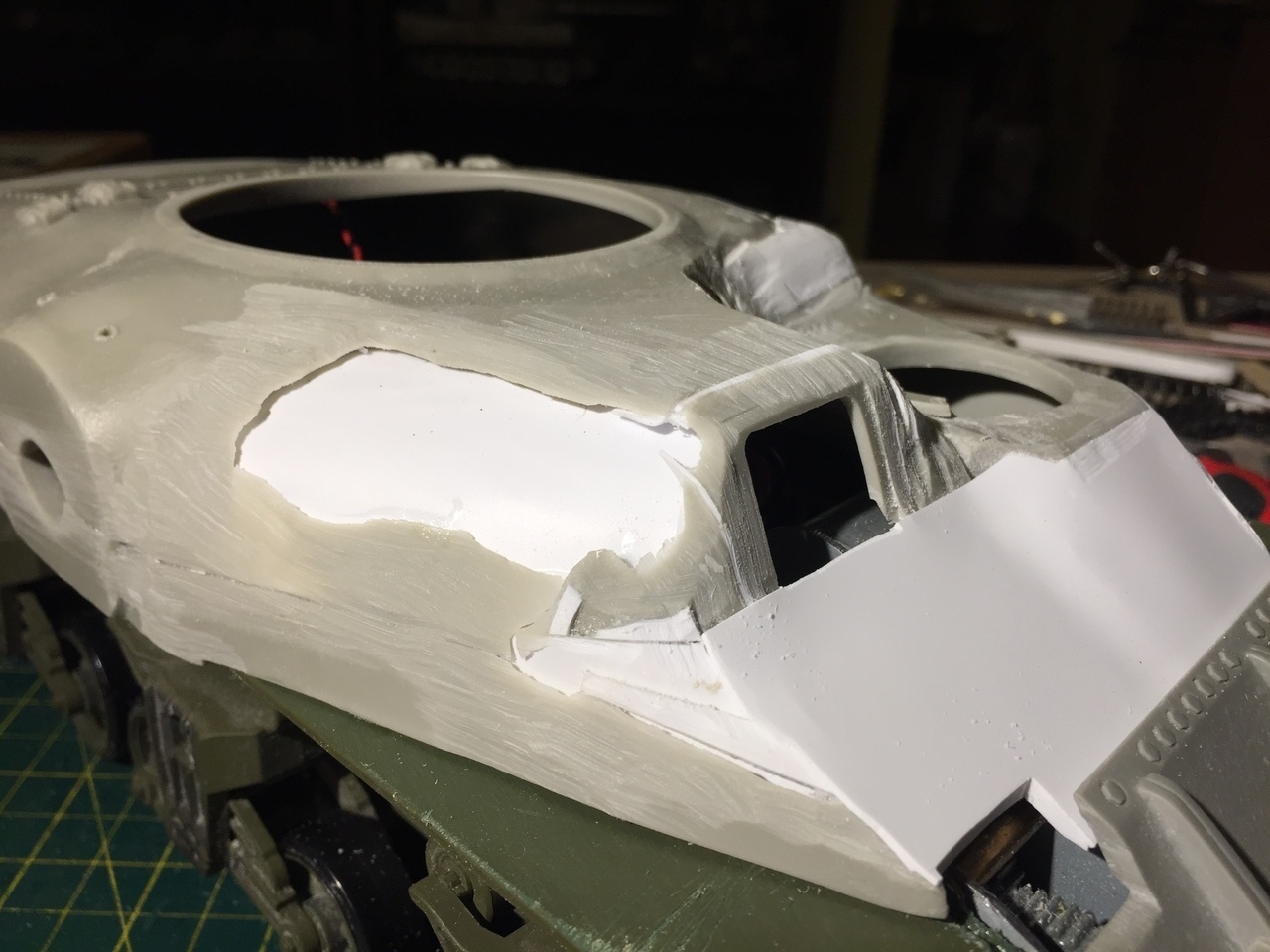 This is the driver's visor. It had to be reduced in height dramatically because it was too square. It needs to be rectangular in shape. Although it goes pretty much unnoticed on the M3 or M7, this part did not fit the new hull the way it was.