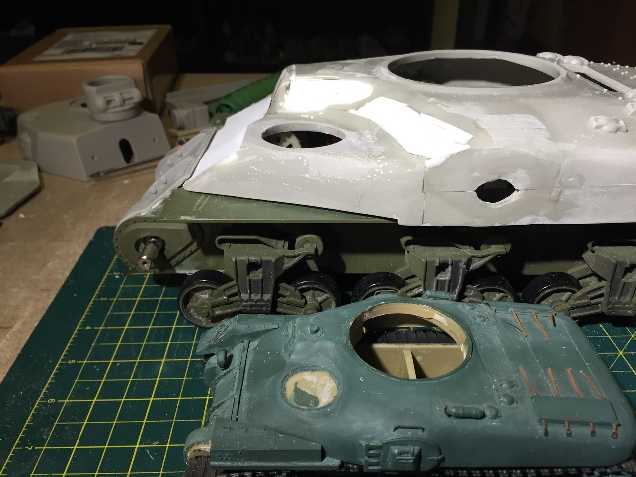 It was more complicated than anticipated. The Ram has curves like Venus that are difficult to define just by looking at pictures or plans. For some reason, the Ram shape looks different on every pictures, especially wartime pictures. So, I totally relied on my 1/35 Verlinden to guide me with the hull redesign, it is essential. Putting the two models in perspective allowed me to compare shapes and angles, identify areas of rework and determine when things are ok.