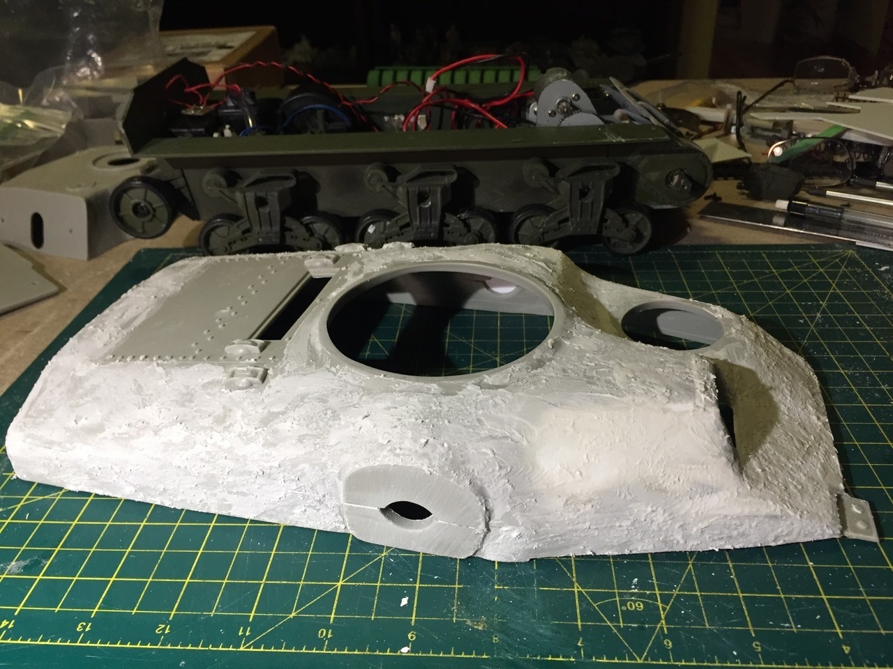 After a coarse sanding, finer putty will be applied, more sanding, more putty, more sanding... until I am satisfied. Then need to rebuild the side doors arrangements from scratch.