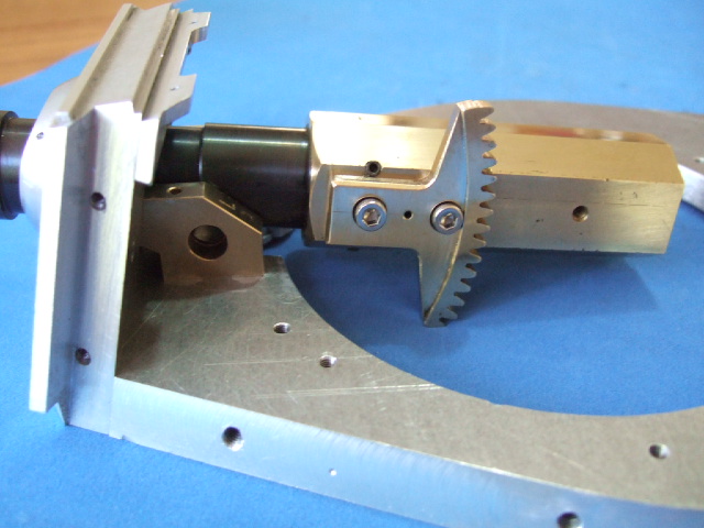 Front view with teflon washer for smoothe gun recoil and recoil servo holder.