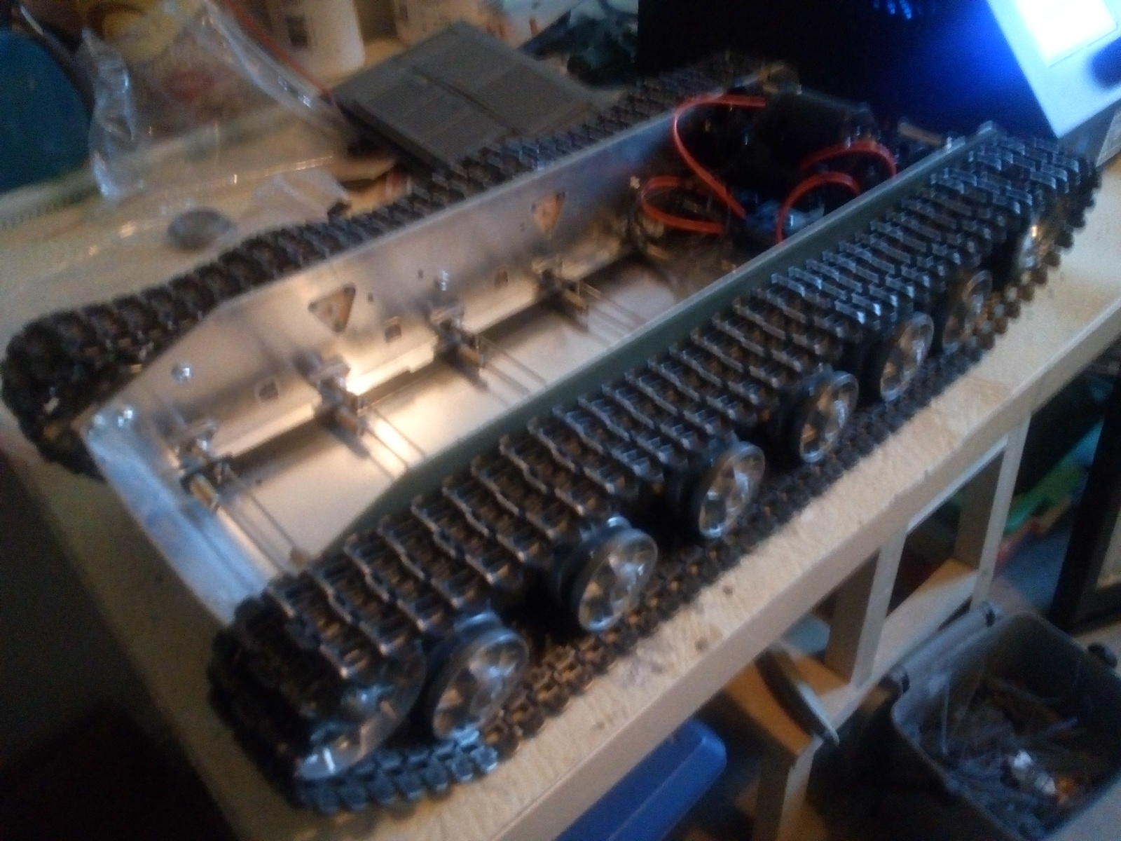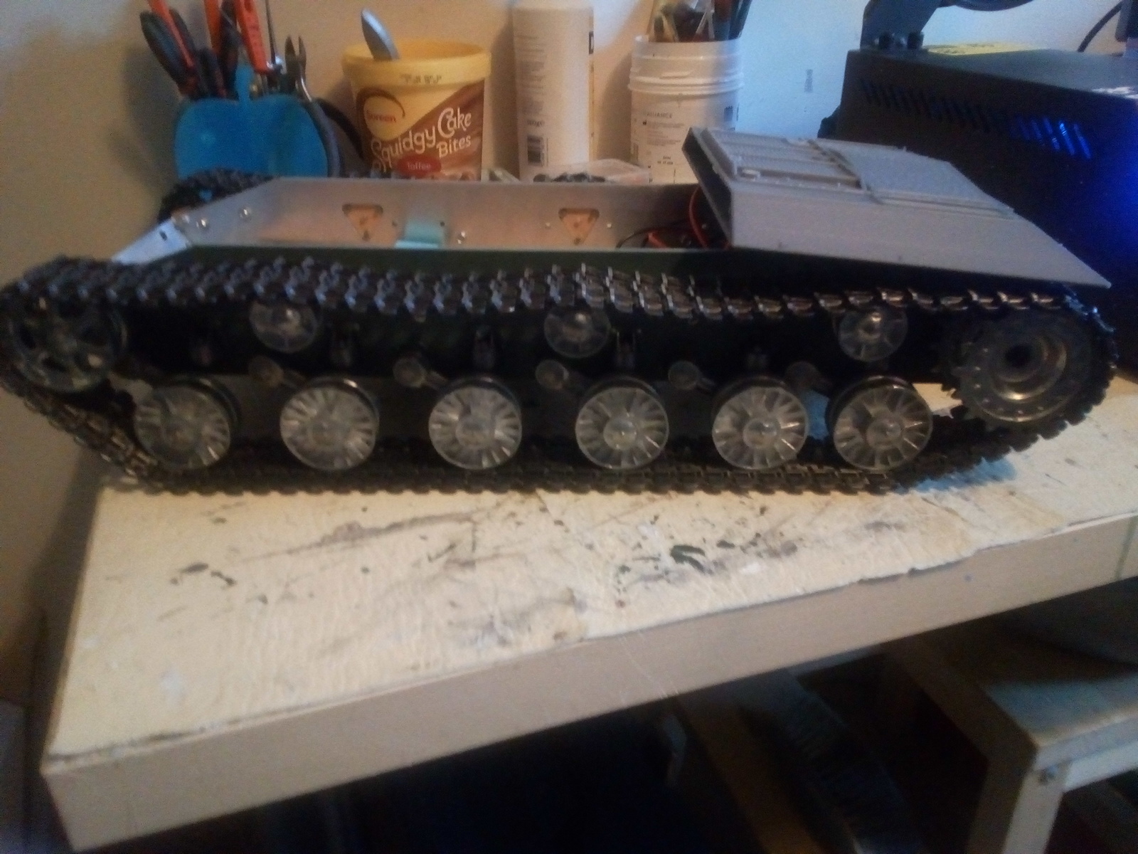 The lower hull is pretty heavy, so it should crawl around nicely. The upper hull is all 3D printed so it is as light as a feather.