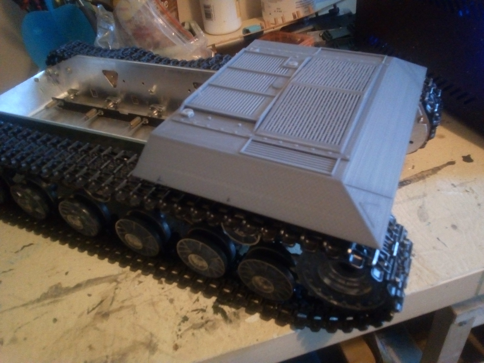 The rear deck reprinted, and clears the gearboxes. Just started the citadel, which is a 22 hour print....
