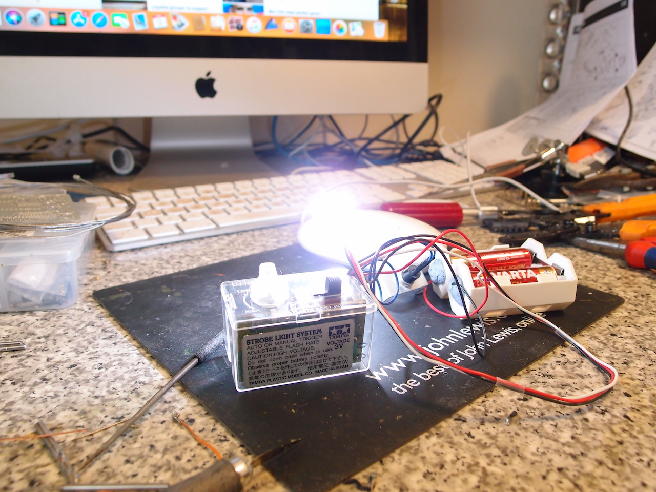 Sorting out the lighting, amazed the flash is working ,needs 3v supply. Front light works , had to strip cable to fit , lucky no short circuit. Convoy light the easy way, tip off the net. Cut slot then little plastic tube that protects the brushes.