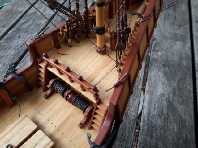 Poop deck hand railing started.