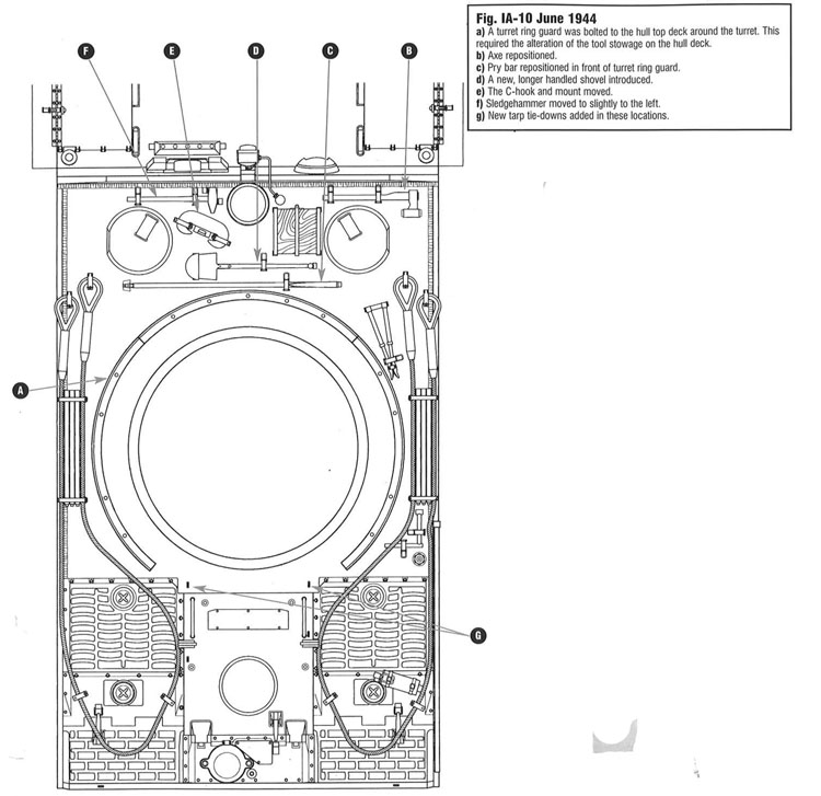 Late version modifications. Tools location, turret ring, lifting pilze's, hatches, plates on turret and deck.
