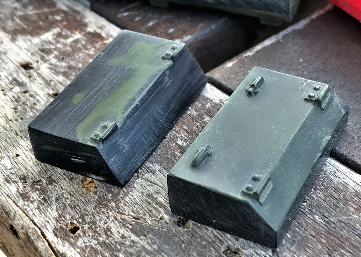 The detailing is done and the bins are ready to be installed on the fenders. It somehow took a long time. The Schumo M-26 handles will be added when i receive them from Axel Modellbau.