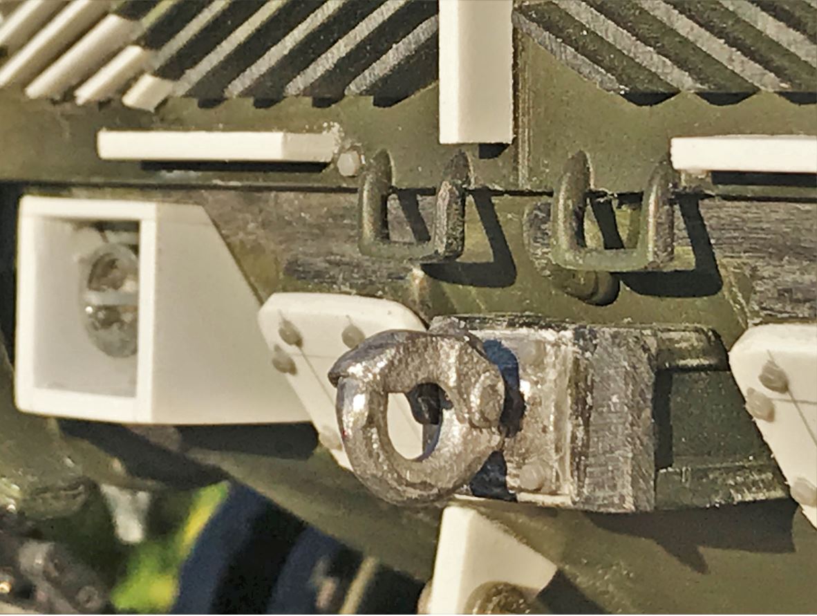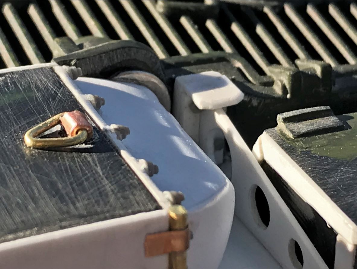 I have spent 20 hours to rebuild the fenders that I had previously totally flattened. A key item to add is the L shaped 2mm x 3mm brass strip alongside the exterior of the fender in sections, in addition to the brackets and about 120 nuts and bolts on each side. Installing these Meng nuts and bolts is enough to make you sick but they are really important for the accuracy and look.