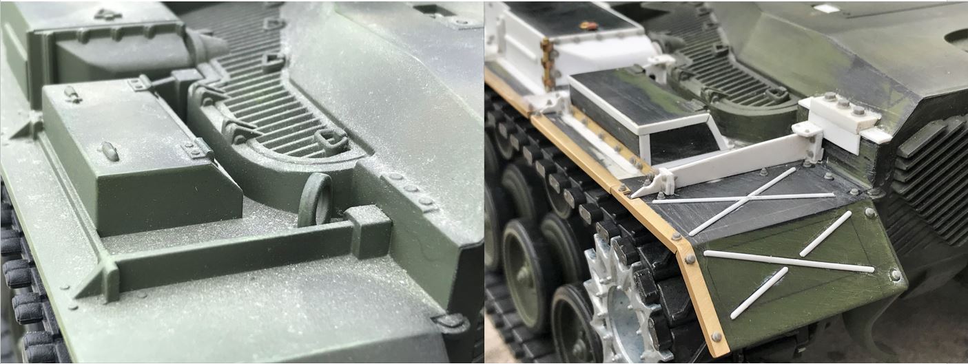 Following at 3 pictures that compare Before (left) and After (right). The 21st Century model is an early M48A3 so there are differences in layout but you can see where the changes on common components.