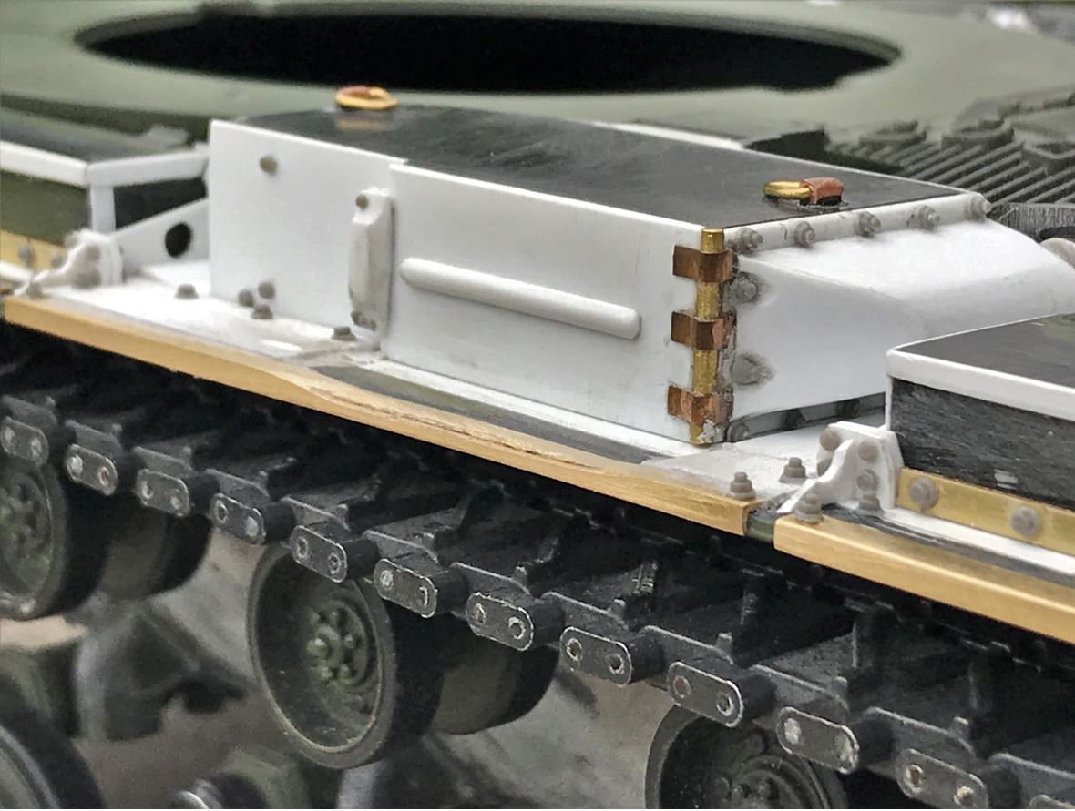 The M48 fenders are rich in brackets, braces, bolts and nuts. These are worth reproducing for a detailed model. The M48A3 Mod B version had re-enforced fenders and the attachments are different than the early M48A3. As the tanks were modified to Mod B, remnants of the early brackets can still be found on the front glacis. There are also variations for the Mod 3, the embossed stiffeners are sometimes not there on the 3th panel from the front.
